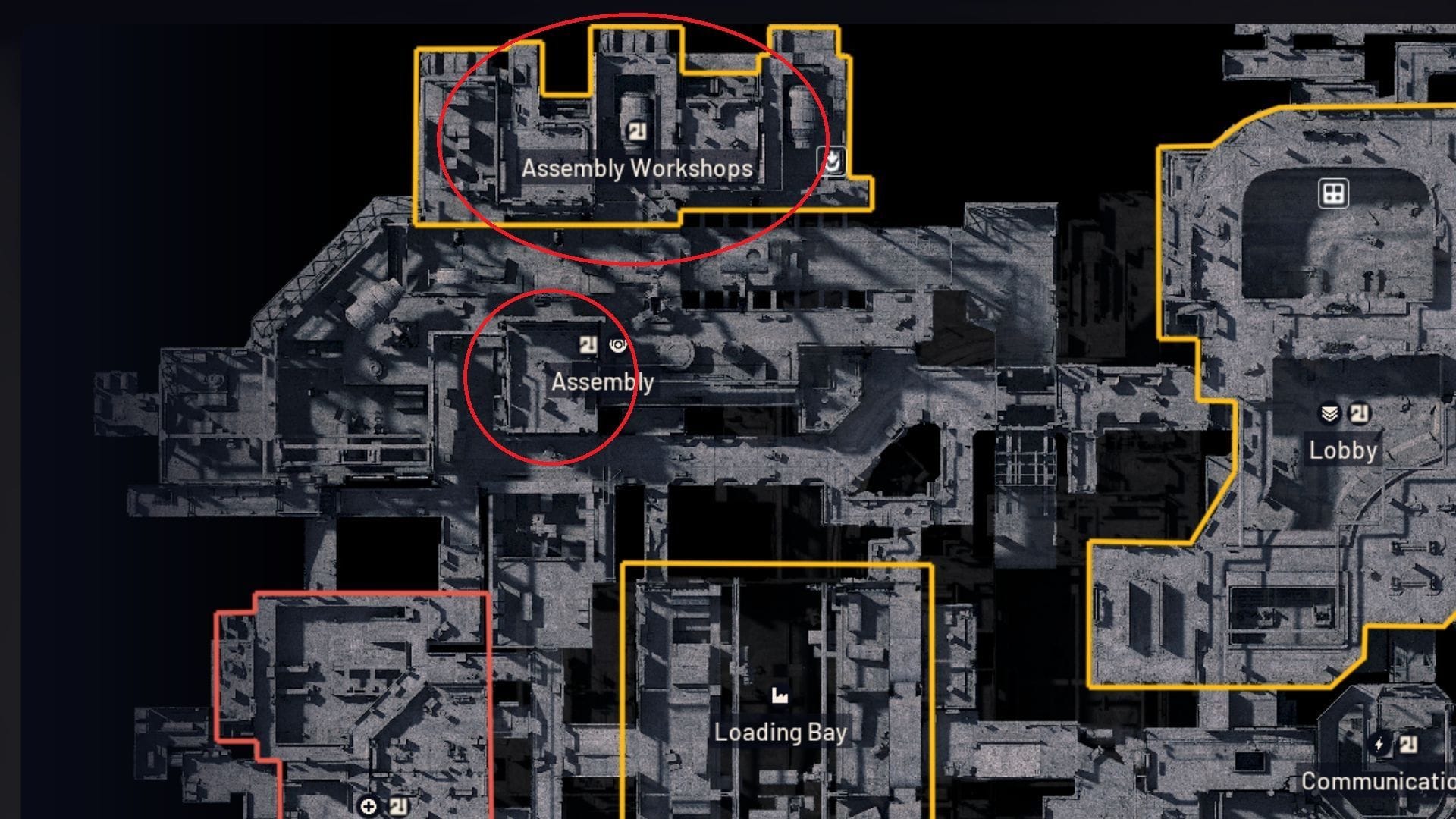 Находясь внутри здания с видом на Сборочные мастерские, поднимитесь на верхний этаж с помощью лестницы. Затем идите налево в комнате, где вы увидите светящийся рычаг. Используйте ротационный энкодер для активации переключателя и завершения этой конкретной цели.