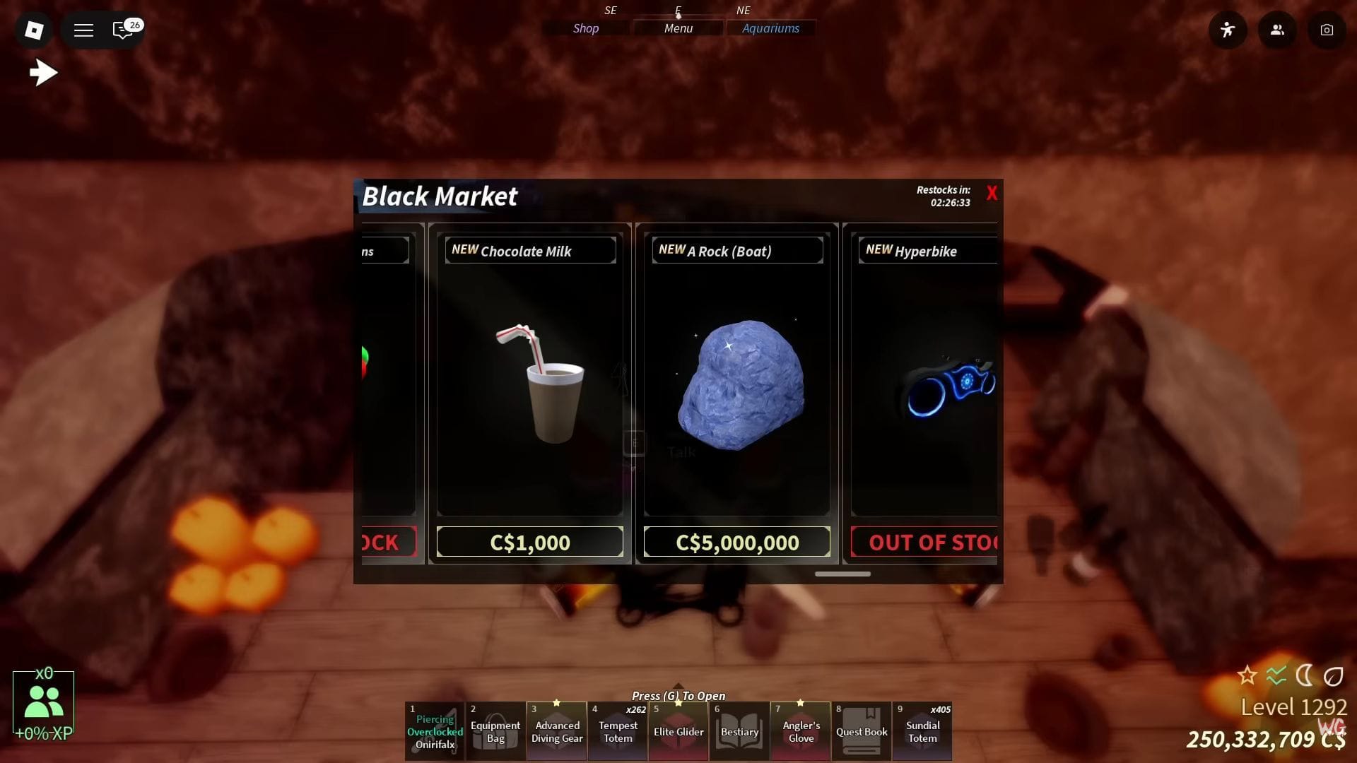 Fisch предлагает богатый выбор лодок для игроков, чтобы исследовать моря. Лодка под названием Rock может быть приобретена на Черном Рынке и является одной из самых быстрых в игре. Поскольку она эксклюзивна для Черного Рынка, нет гарантии, что она будет доступна каждый раз, когда появляется продавец. Это делает её довольно редкой и сложной для получения.