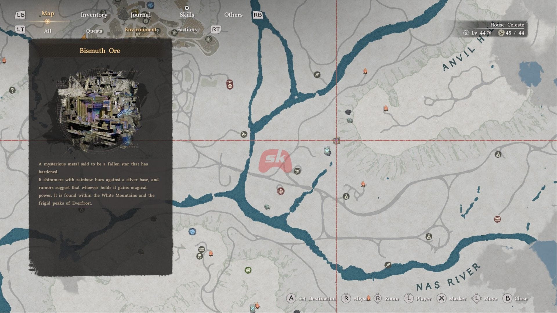 Проще говоря, Abyss Cells выпадают от поверженных врагов в Абисс. Первые такие существа, с которыми вы можете столкнуться в игре — это крабы-пустынники, которые маскируются под Висмутовые руды. Их можно найти на месте, изображенном выше, по бокам холма с Abyss Cress, окружённым странными растениями, которые наносят вам урон, если вы в них наступите.