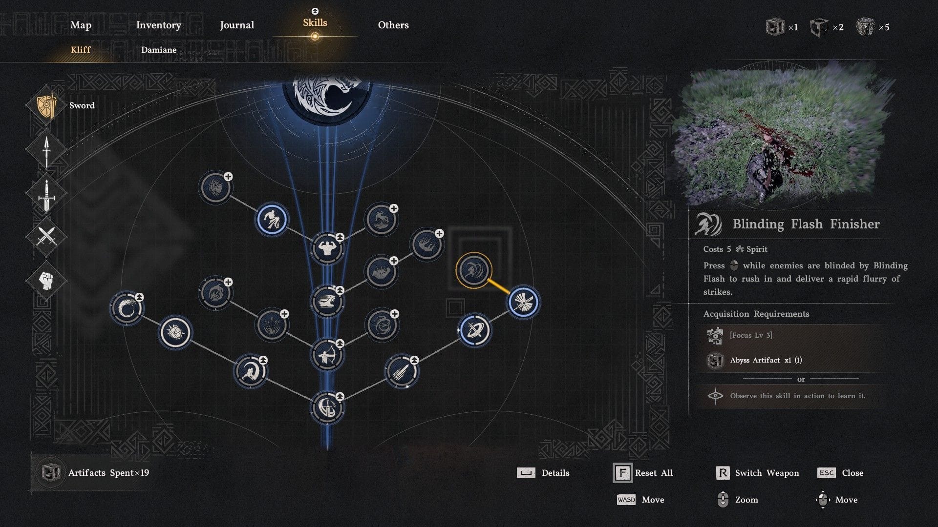 - Изучите Навык Ослепляющего Финишера в Дереве Навыков. Для этого требуется один Артефакт Бездны и уровень 5 Фокуса.