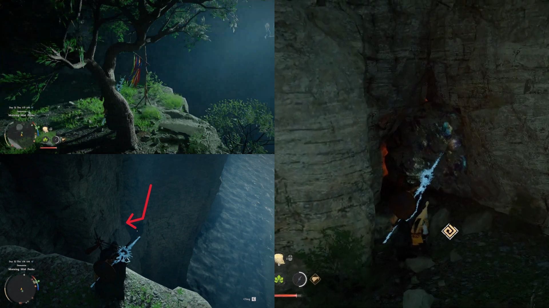 - Осмотрите подножие скалы, и вы увидите небольшую платформу внизу, которую легко пропустить, если не присматриваться.