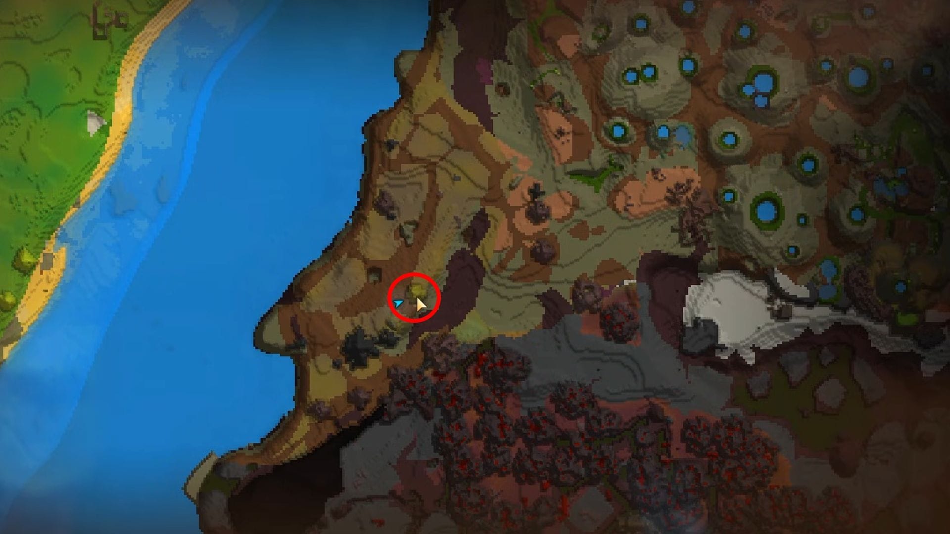 Как только вы сможете войти в Зону 4, следующим шагом будет поиск Сливового дерева. Эти деревья выглядят как высокие кустистые деревья с золотистой листвой, как показано на изображении выше. Этот вид деревьев можно в основном найти в желтоватых районах Безлюдных Земель, которые расположены среди серых вулканических территорий.