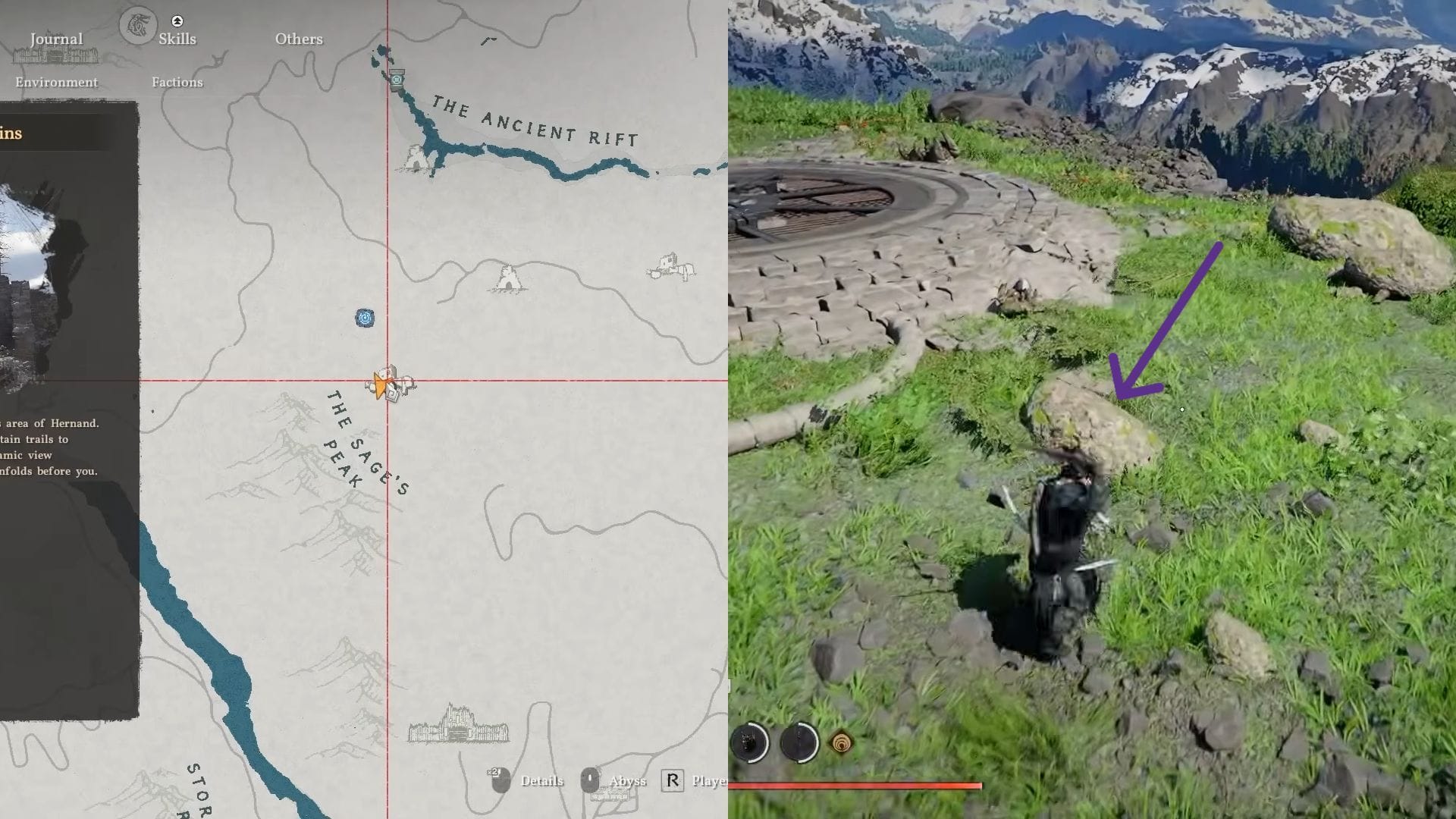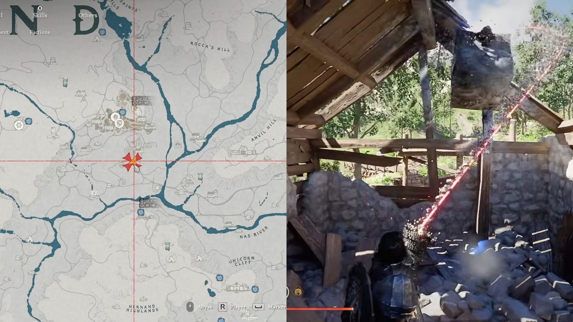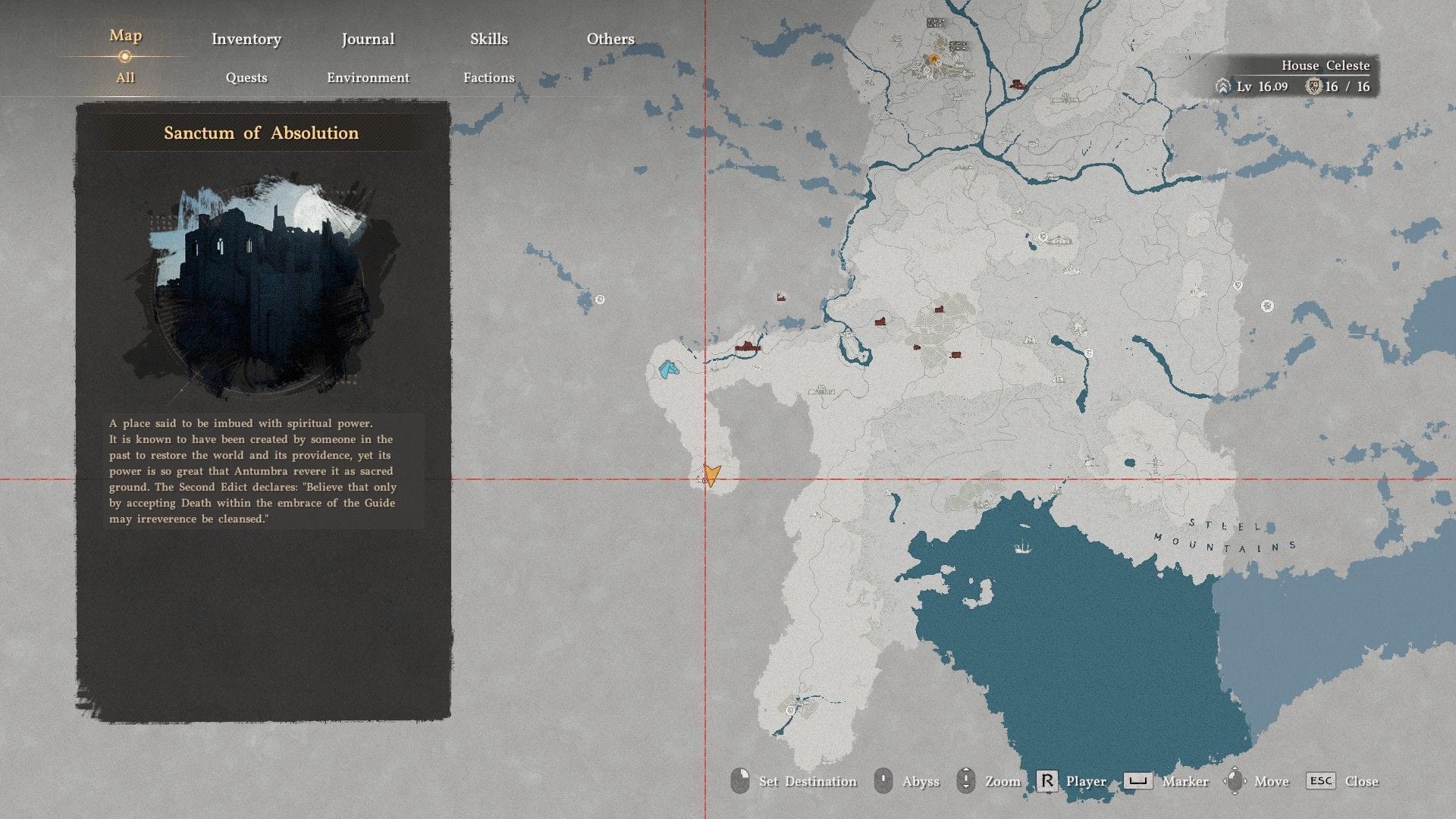 Ячейка бездны является более сложным ингредиентом. Одно из надежных мест для её нахождения — пещера недалеко от Pailune на севере, восточнее буквы P на карте, как показано на изображении ниже.