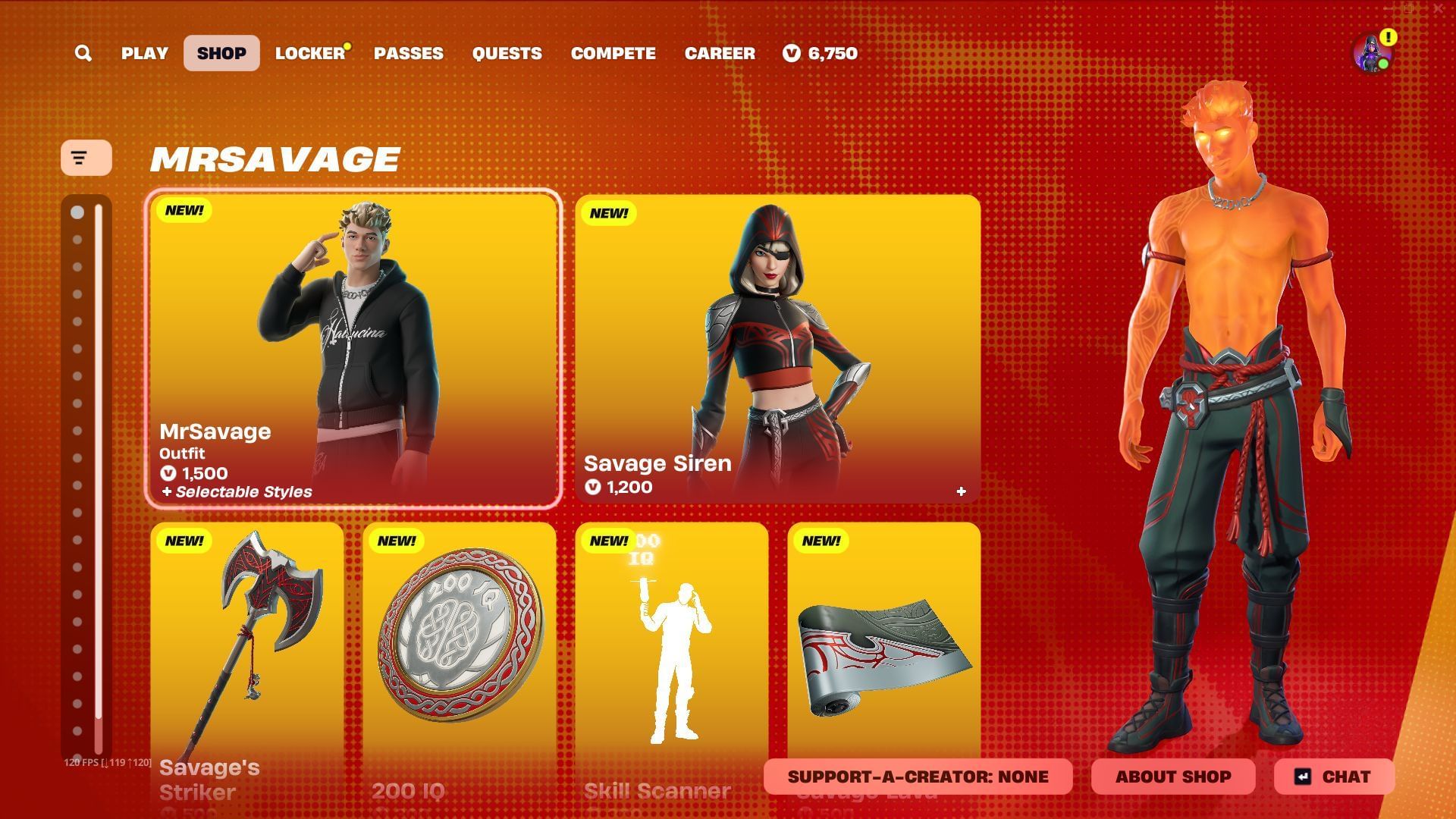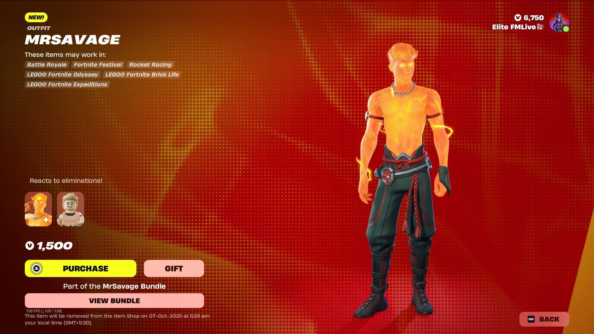 На сегодняшний день (27 сентября 2025 года) скин MrSavage из серии Icon в Fortnite указан в Магазине предметов под вкладкой MrSavage. Он доступен для покупки в рамках пакета MrSavage и является частью набора MrSavage.