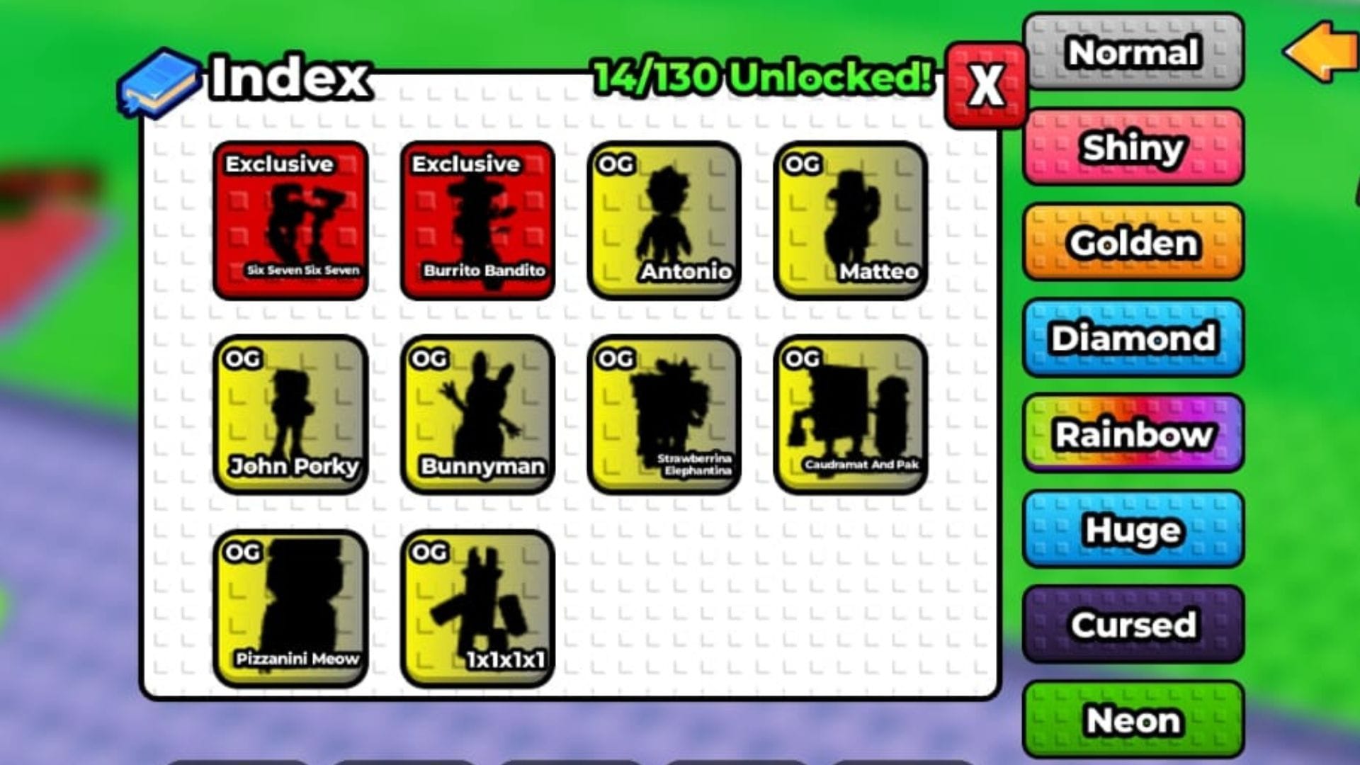 Pizzanini Meow и 1x1x1x1 входят в число самых труднодоступных brainrots в категории OG. Тем не менее, вы можете получить их в качестве подарков от других игроков. Чаще всего это происходит во время администраторского абьюза, когда ветераны дарят редкие brainrots новичкам, помогая им освоиться в игре.