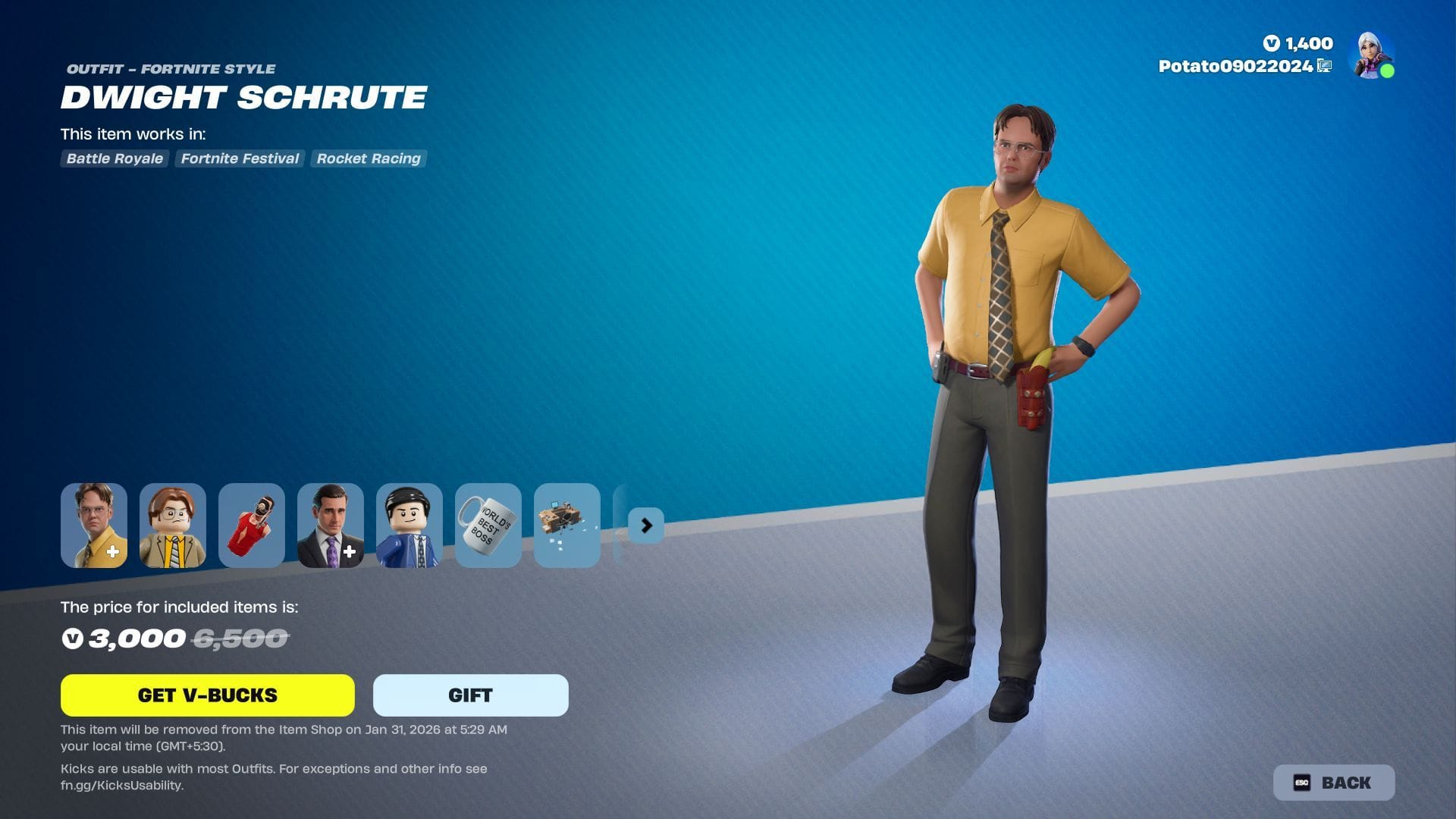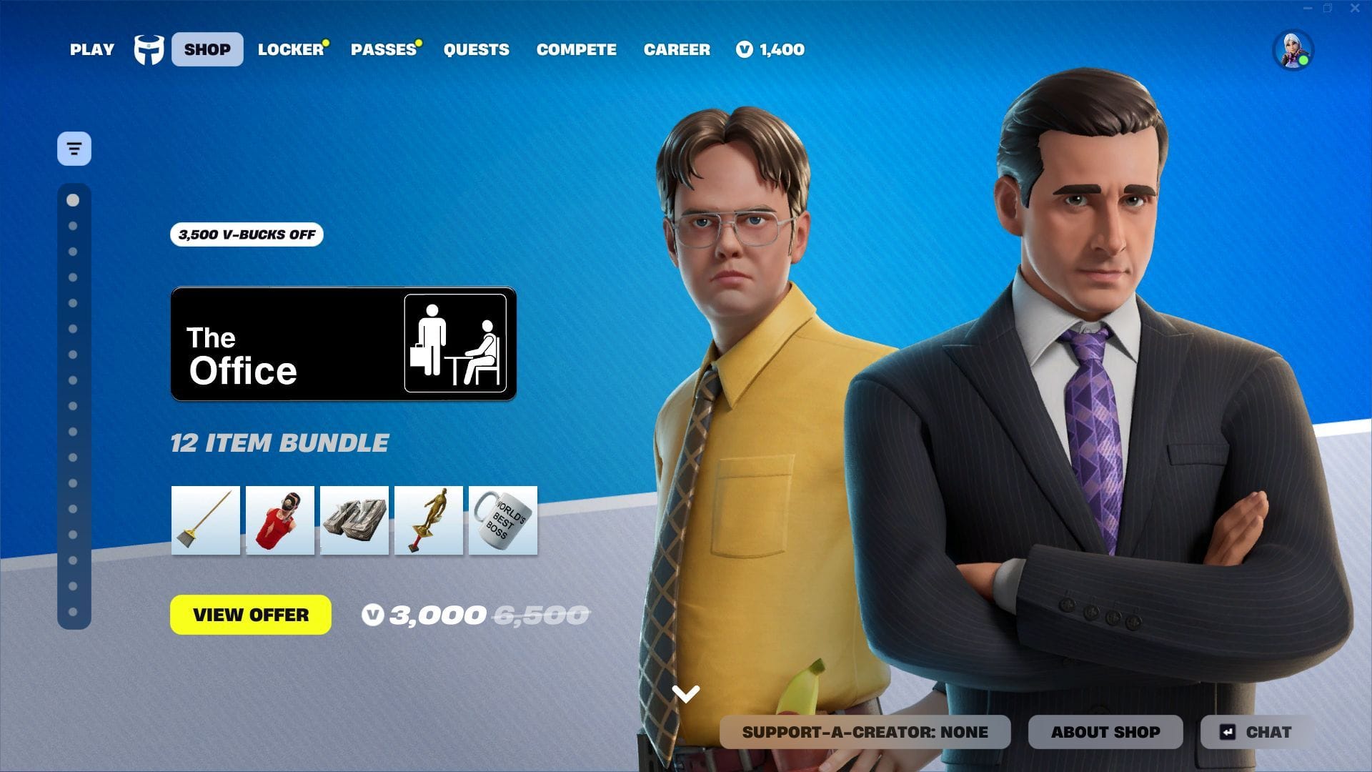 Если вы хотите приобрести все предметы из The Office Bundle, вы можете сделать это за 3,000 V-Bucks, что является скидкой. Также есть возможность купить все косметические предметы по отдельности.