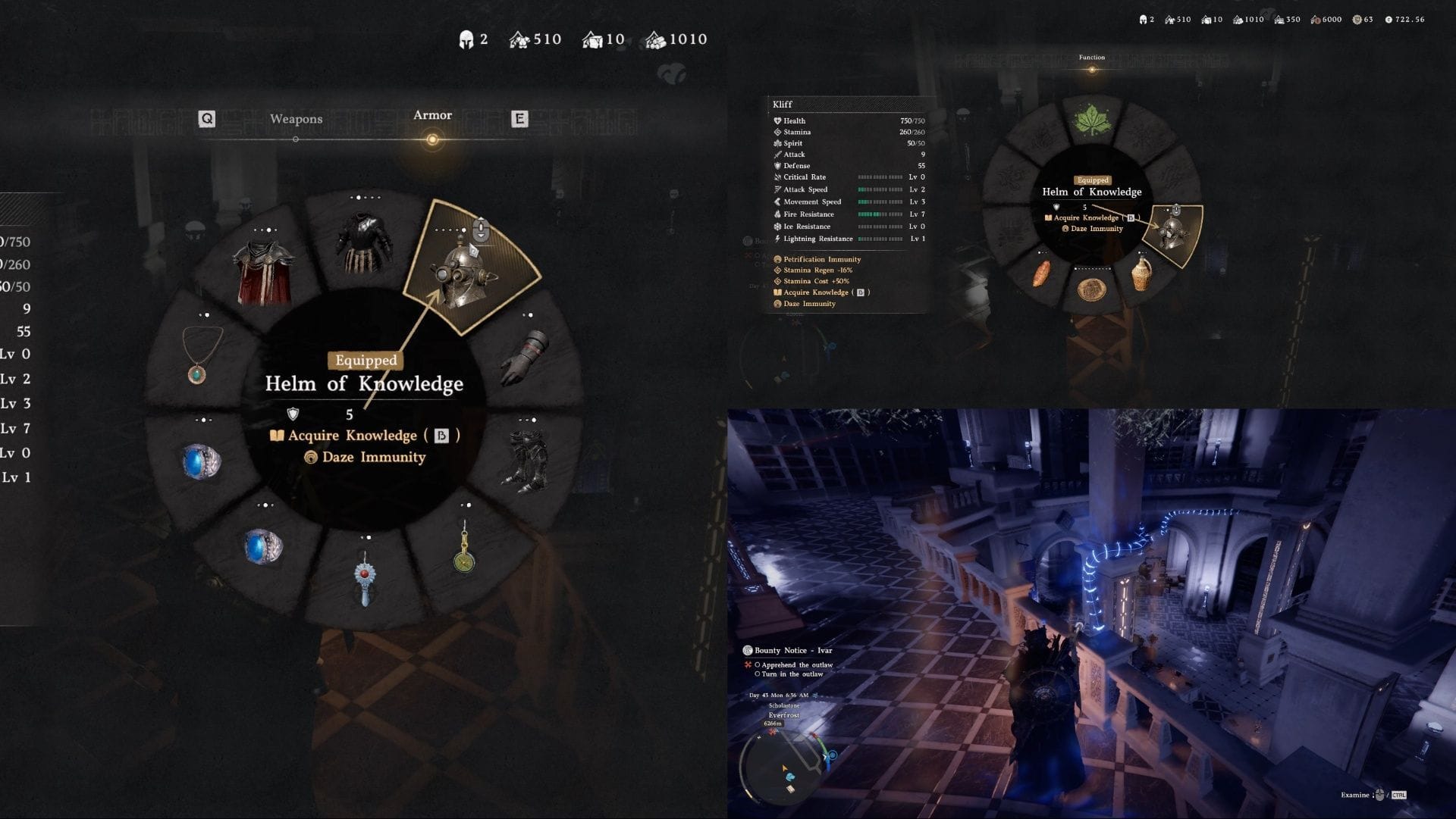 Шлем Знаний — это уникальный элемент брони в игре Crimson Desert, который можно получить в Институте Школастона. Этот шлем не предназначен для боевых действий, так как он имеет значительные недостатки в отношении выносливости. Например, скорость восстановления выносливости снижается на 16%, а такие действия, как атака или уклонение, будут потреблять на 50% больше выносливости, чем обычно. Тем не менее, для получения знаний о мире этот предмет является идеальным.
