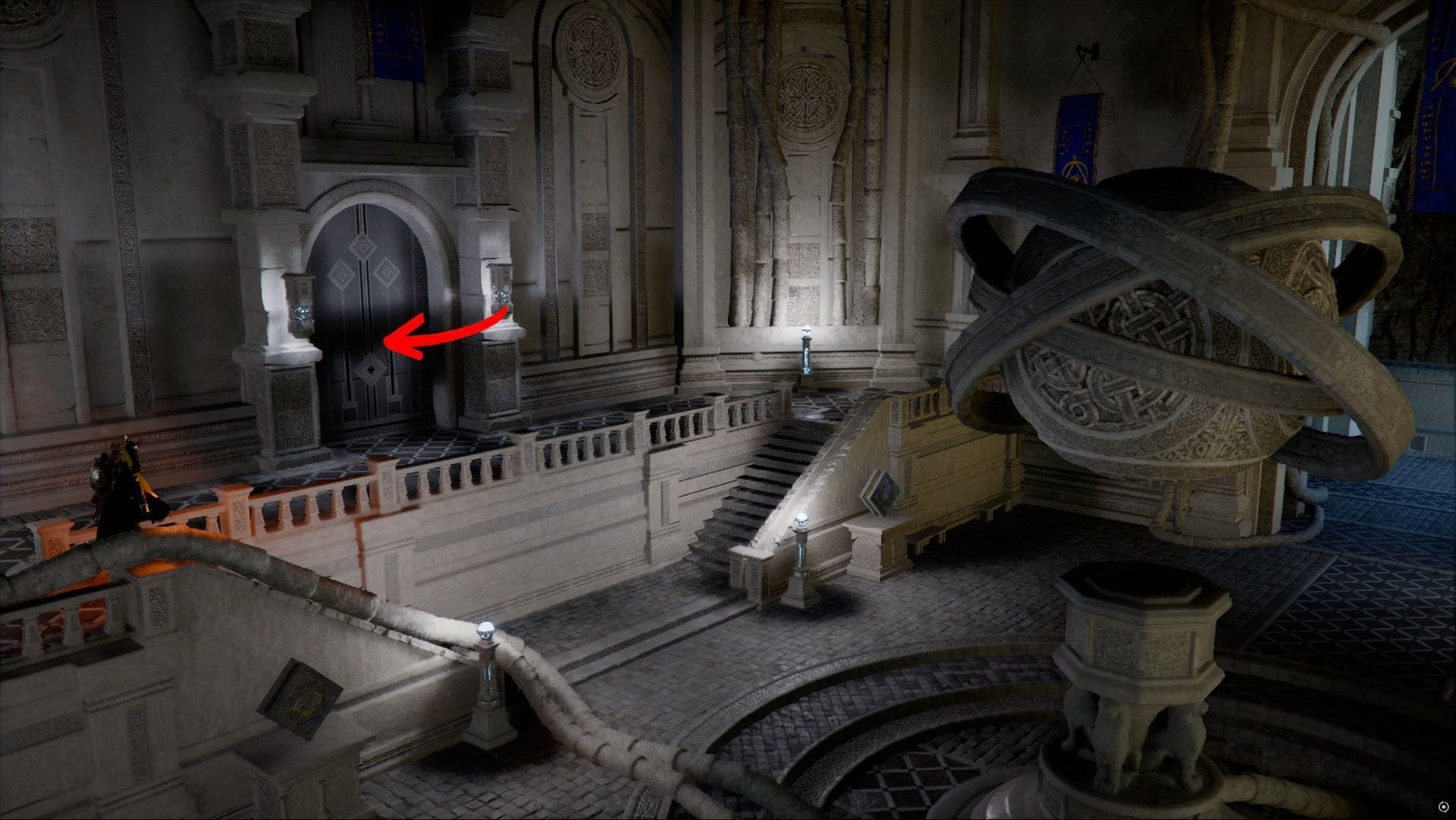 Зайдите в Институт Школастона и направляйтесь в центральный зал. Здесь вы увидите большой левитирующий каменный шар с каменными кольцами. На северной стене, прямо над небольшой лестницей, вы найдёте дверь.
