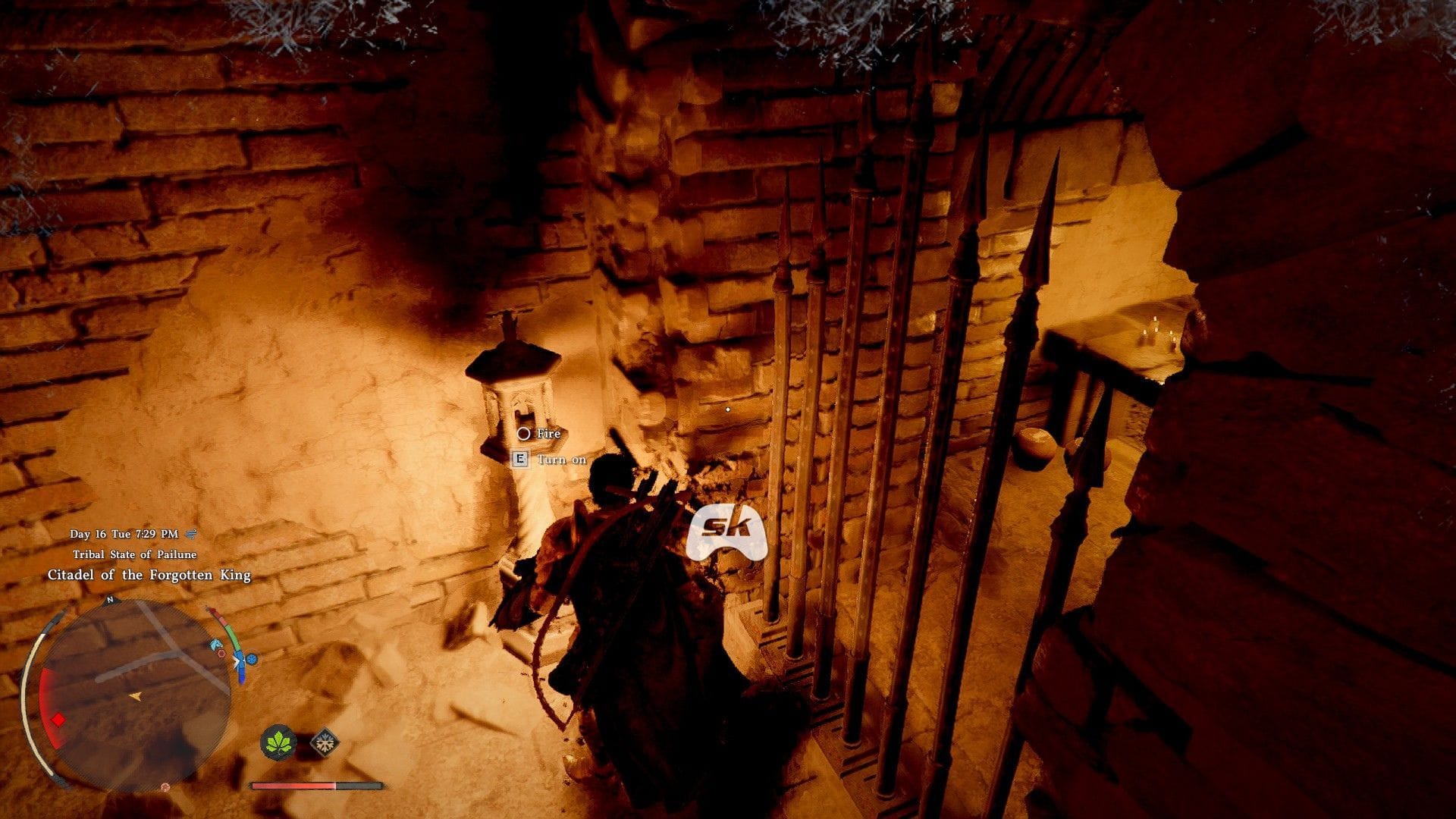 Как только вы пройдете коридор, будьте осторожны, так как здесь будут еще ловушки, стреляющие огнем. Вы сможете легко их пересечь, чтобы добраться до следующей комнаты. Здесь окажутся два противника, и будет разумно избежать их . Сделайте резкий поворот вправо, и вы увидите дверной проем. Зайдите внутрь и зажгите лампу.