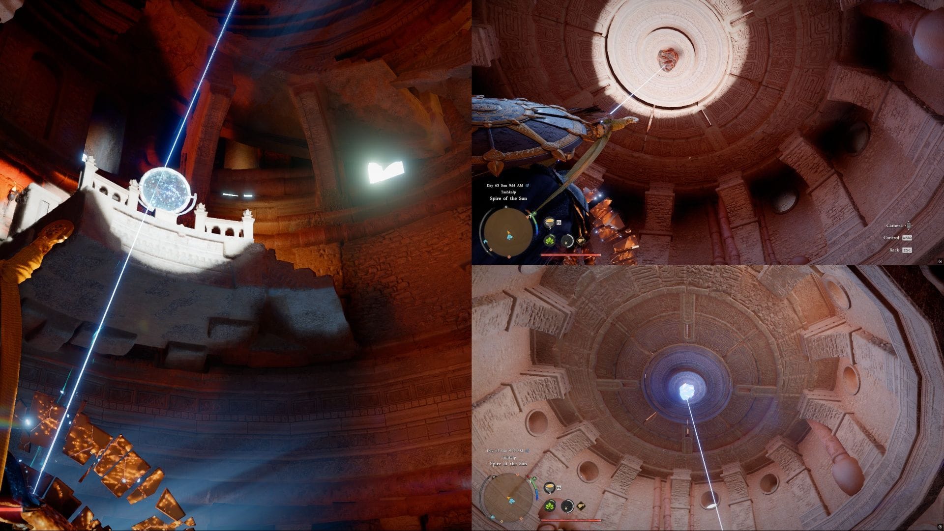 Когда вы войдете внутрь, головоломка еще не завершена. Теперь вам нужно продолжать отражать свет, пока он не достигнет кристалла, расположенного в самом центре крыши.