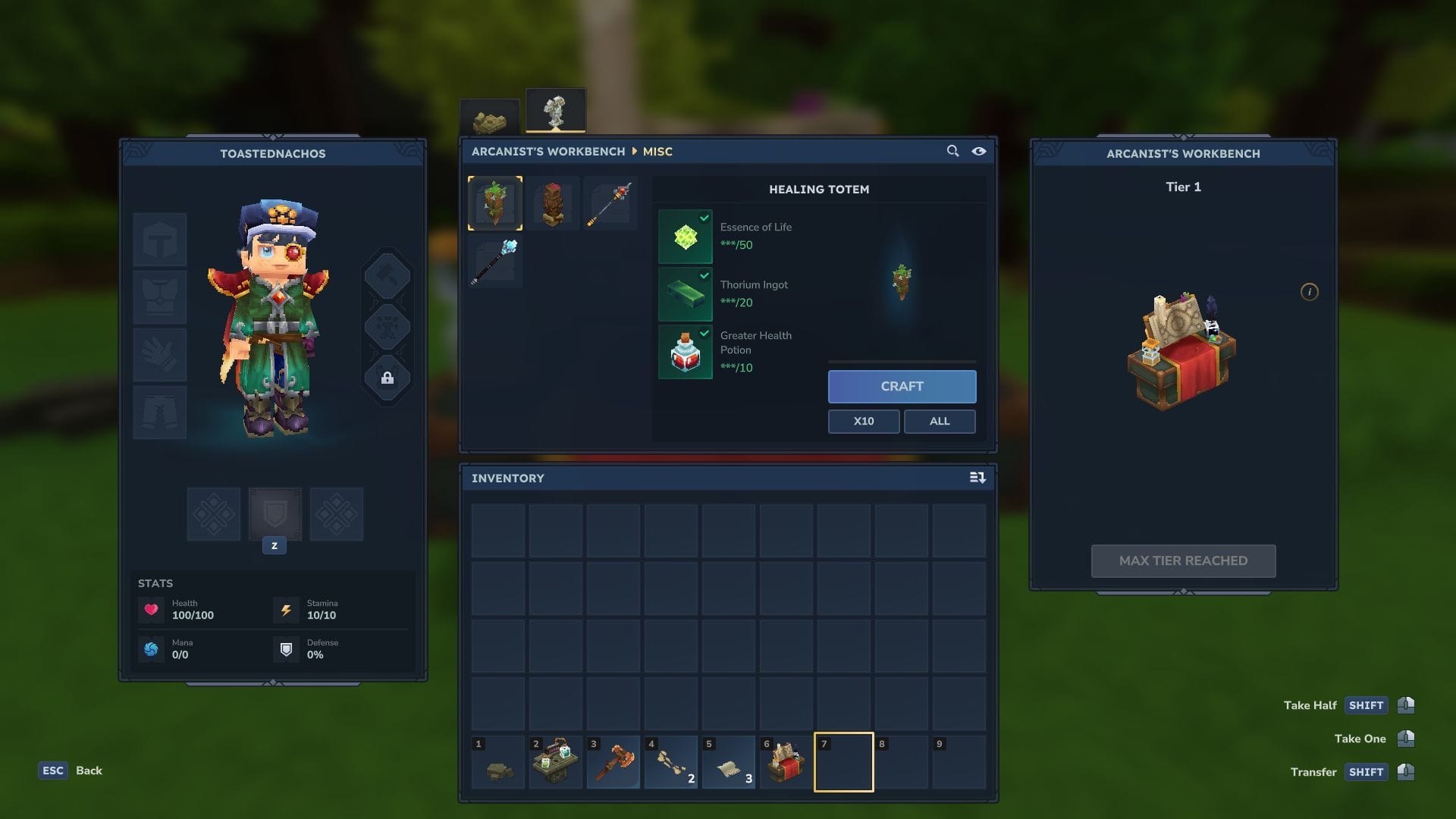 Рабочий стол Арканиста функционирует так же, как и любой другой крафтовый станция в Hytale. После его создания взаимодействуйте со столом, чтобы увидеть список доступных тотемов и рецептов. После выбора предмета будет показан список необходимых материалов для его создания.