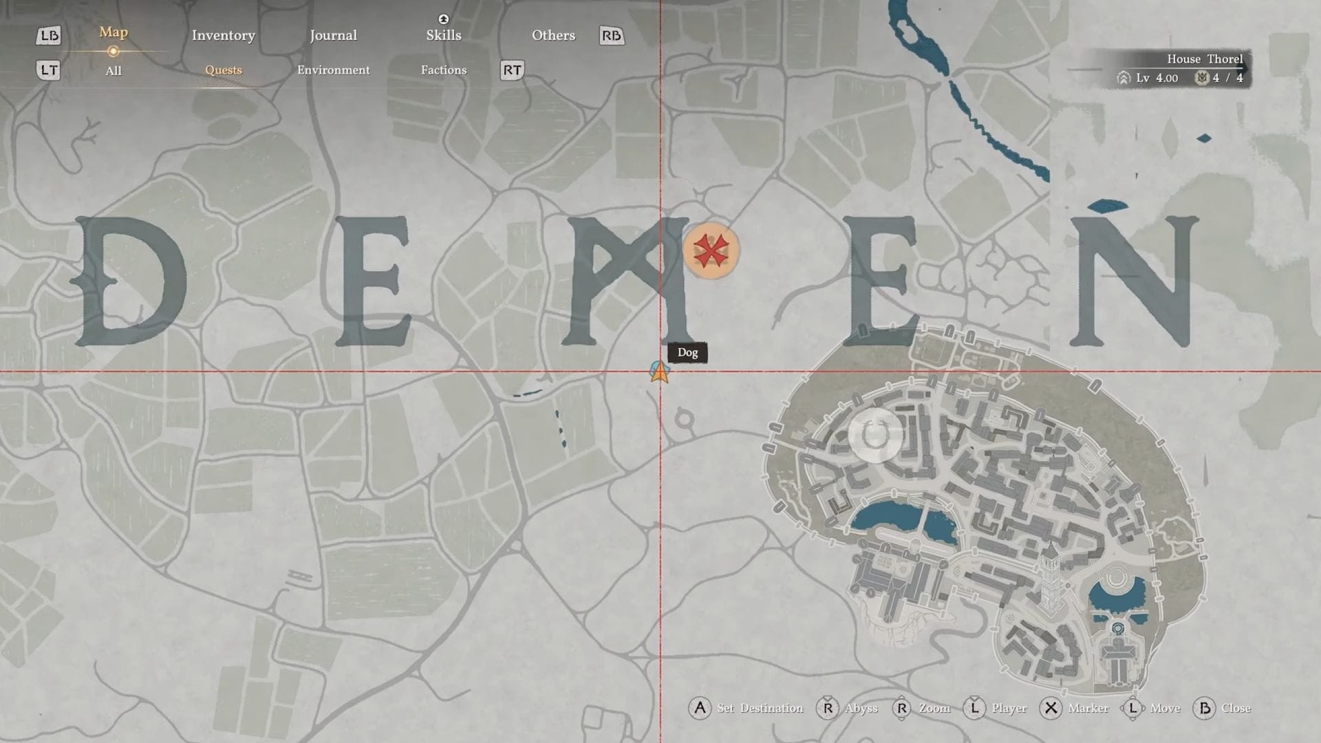 Усадьба находится рядом с Sungrove Manor, который также имеет свою собственную головоломку. Чтобы точно найти усадьбу Azerian, откройте карту и увеличьте масштаб в регионе Деминис. Посмотрите между буквами в слове ‘Deminis’ – усадьба располагается прямо под буквой М, как показано на изображении выше. Это ориентир, к которому следует двигаться.