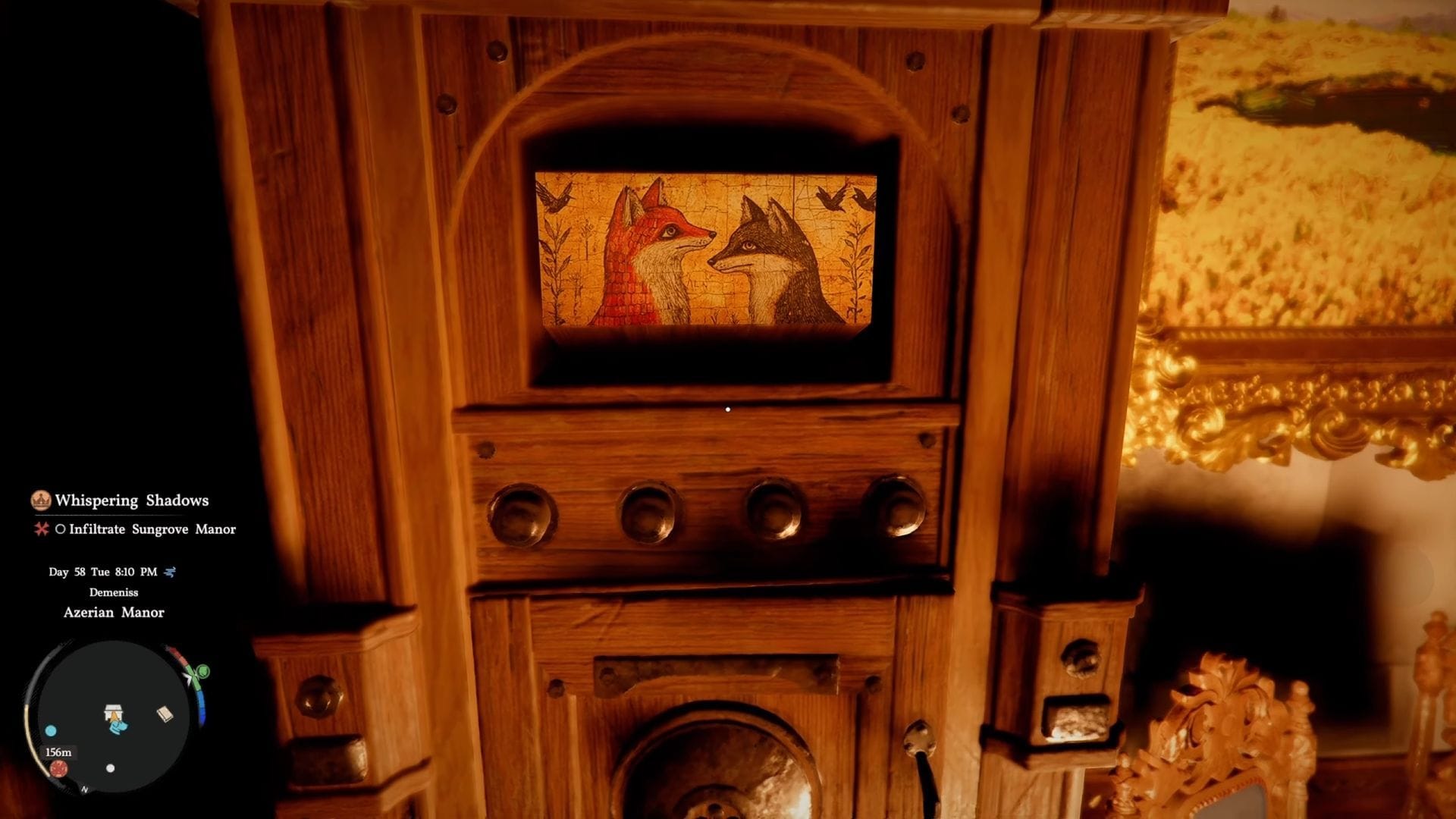 Вместо того чтобы входить через главный вход, лучше обойти здание сзади и войти через окно. Далее поднимитесь на второй этаж. Путь проходит через вращающуюся стену, где вы найдете картину, что делает её легко заметной.