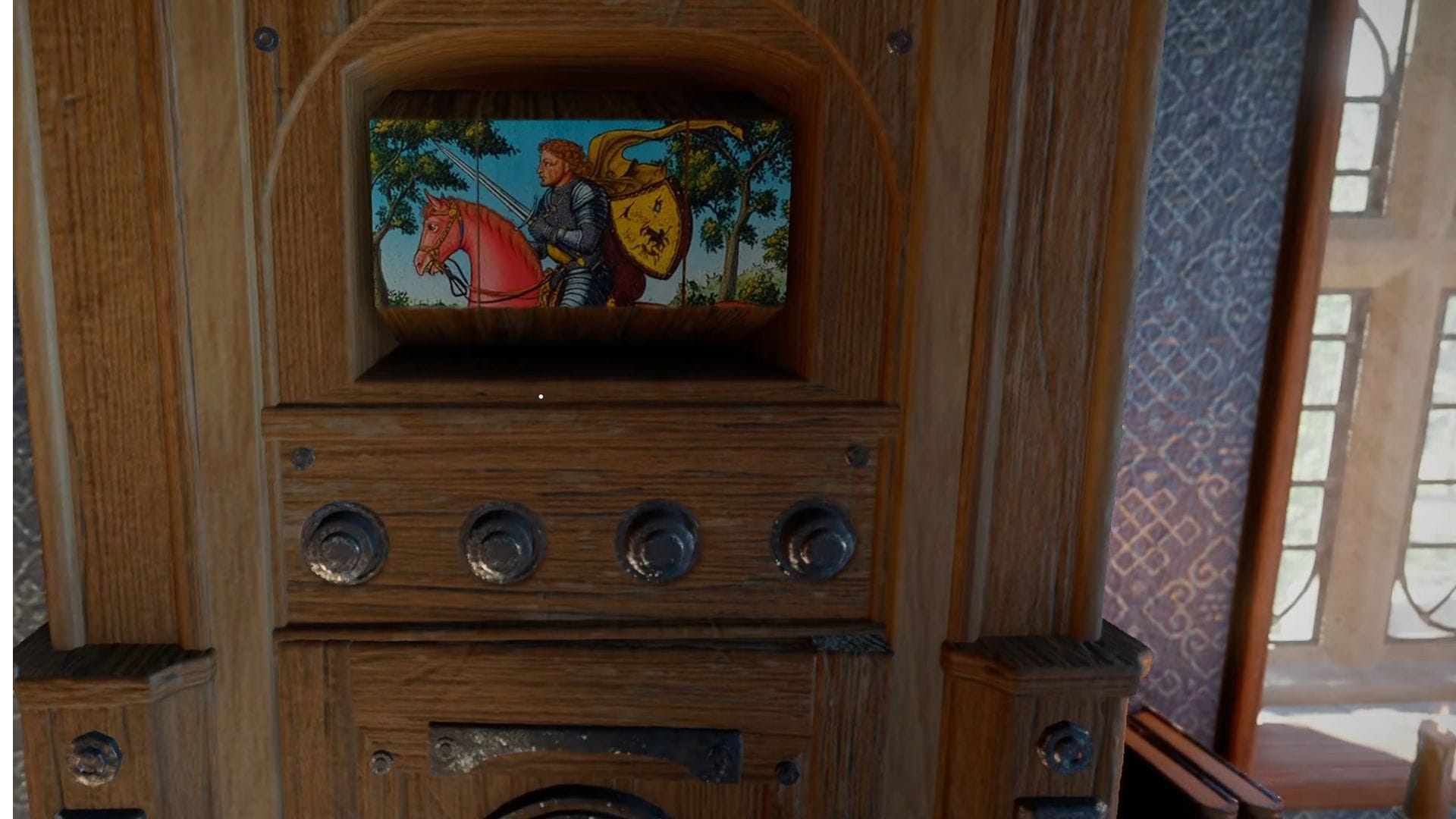 Если вы нажмете кнопки в правильном порядке, панели на Сильном Ящике перевернутся и покажут картину рыцаря. Нажмите F, чтобы открыть Сильный Ящик и достать Малый Ящик.