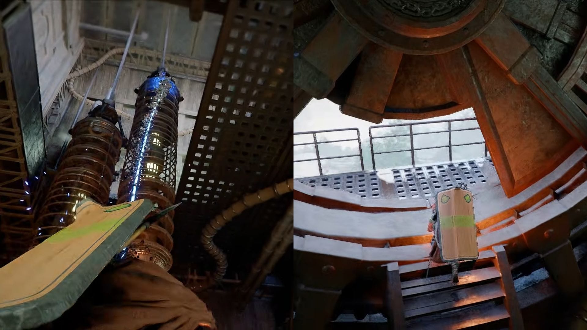 Теперь, когда первый механизм работает, начинается восхождение. Наиболее надёжный способ подняться — использовать Axiom Force для преодоления платформ, а не пытаться парить или прыгнуть с разгона между ними. Это более контролируемо и значительно снижает вероятность неудачи и падения.