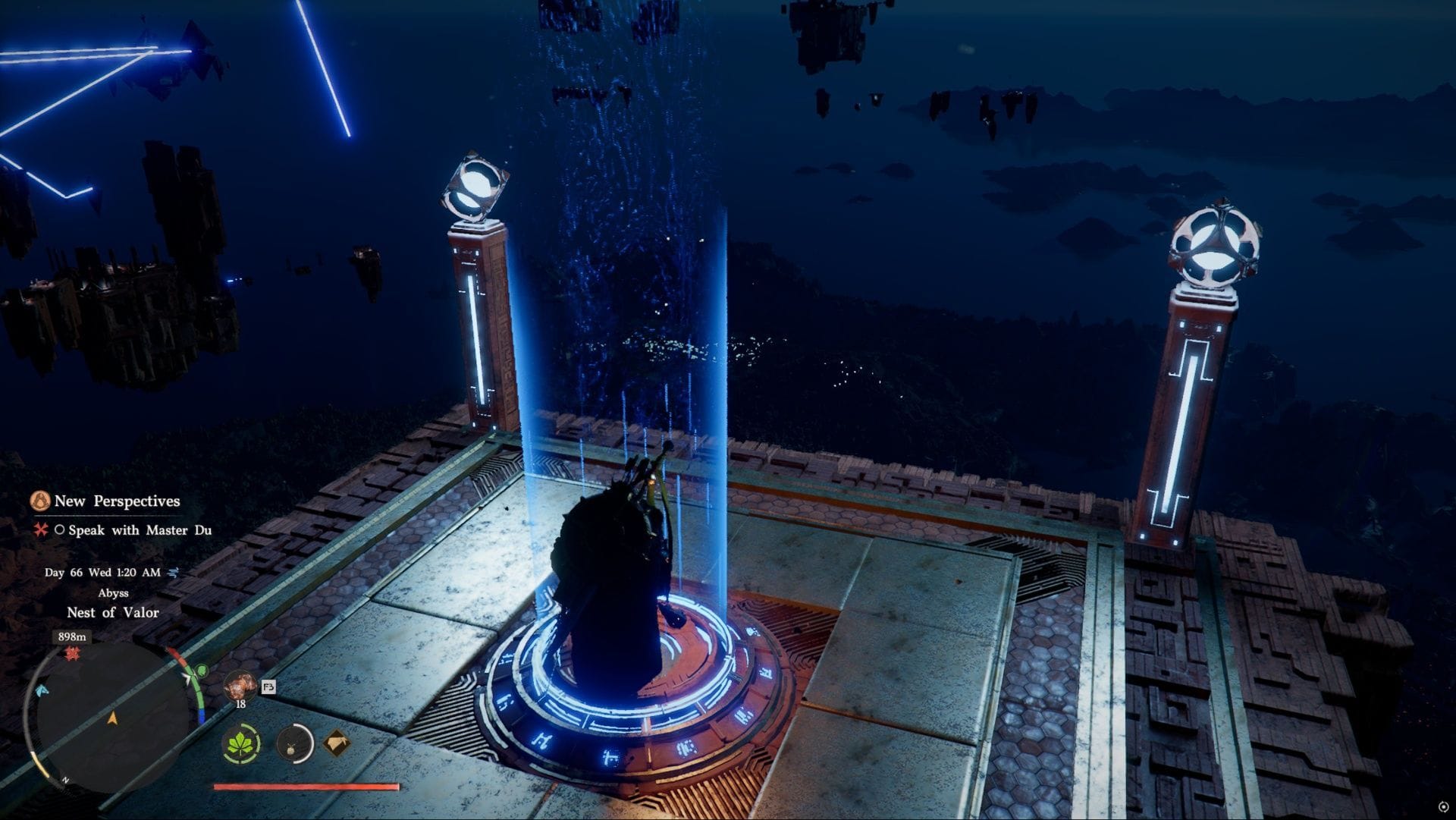 В побочном квесте «Новые перспективы» есть несколько задач, последней из которых является поговорить с Мастером Ду. Предыдущие задачи достаточно простые. Сначала вам необходимо добраться до Кулы Солнца и подняться по лестнице на самый верх, где находится вход в Бездну.