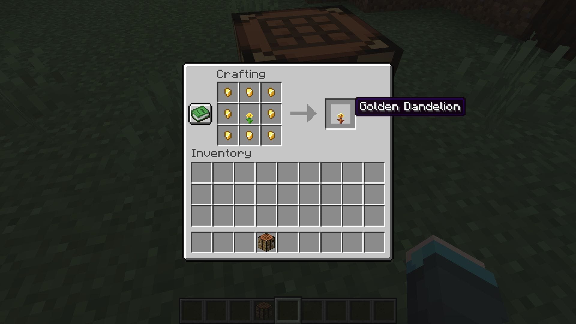 Что касается золотых самородков, их можно получить, переплавляя золотое оружие, броню или инструменты. Разместите предметы в печи, чтобы получить самородки после обработки. Как только вы их получите, разместите восемь кусочков вокруг одуванчика, чтобы изготовить золотой одуванчик.