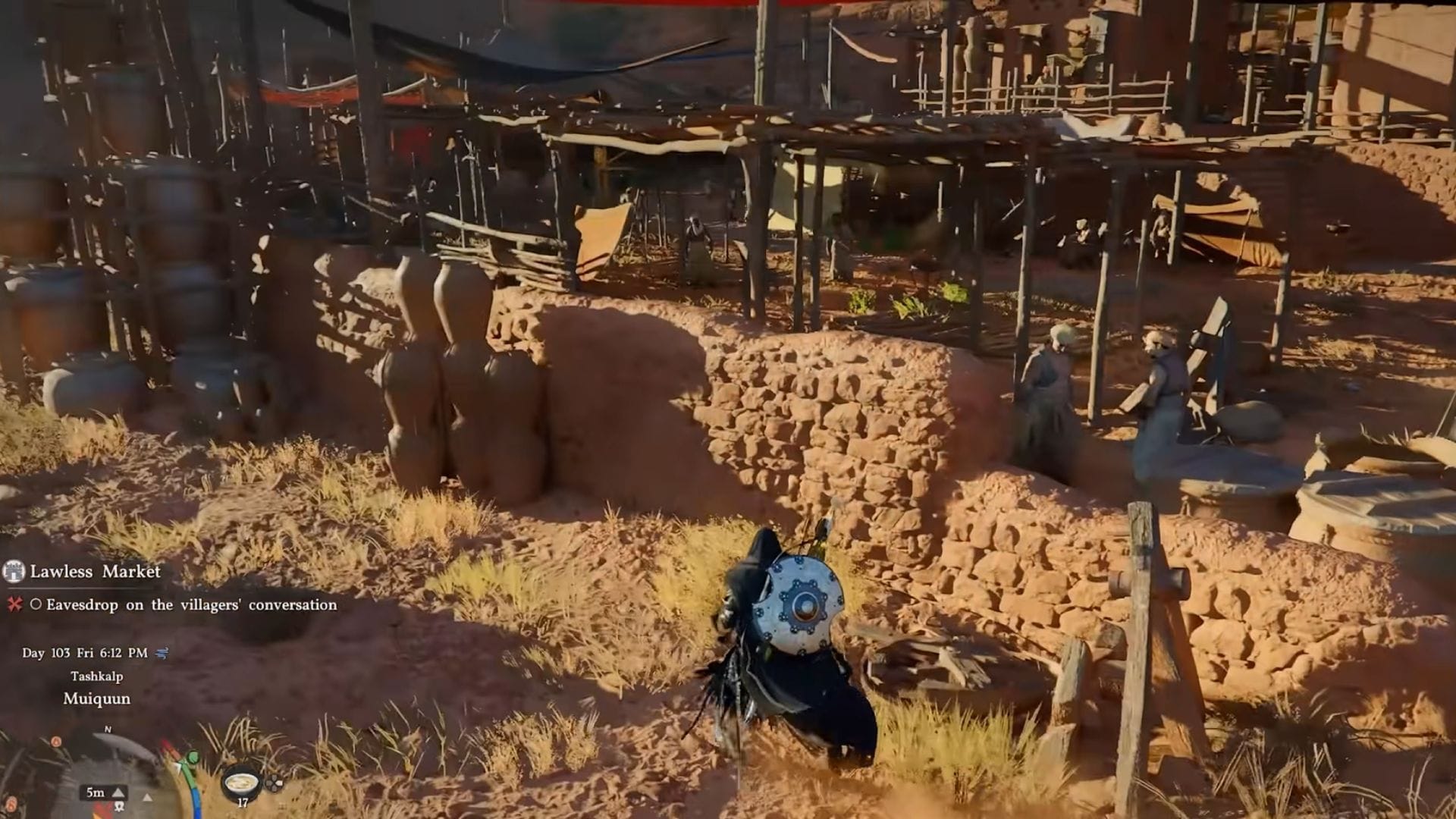 Чтобы начать квест «Беззаконие на рынке», вам необходимо освободить деревню Муйкун через квест «Налетчики Муйкуна». После этого область станет обычным городом с различными NPC и магазинами, включая квест «Беззаконие на рынке». Перед началом квеста также убедитесь, что вы получили маску.