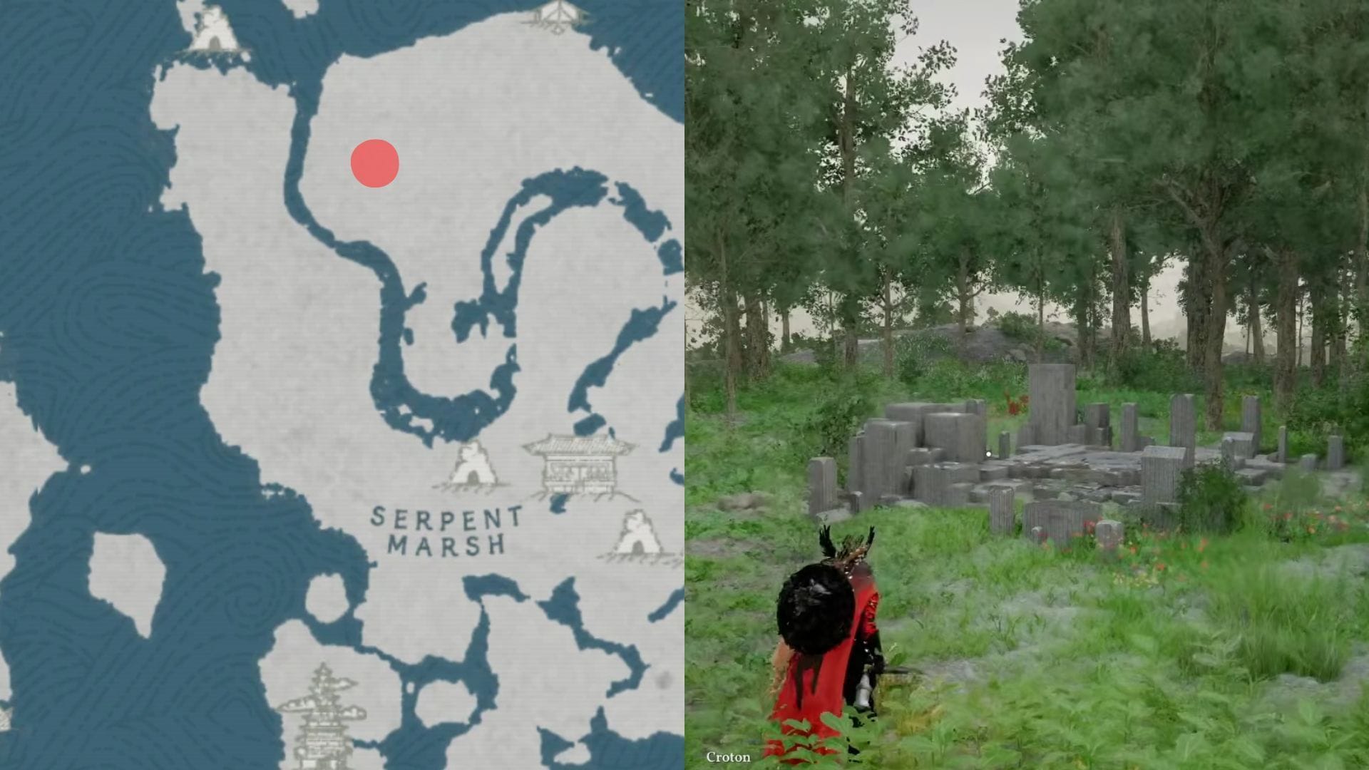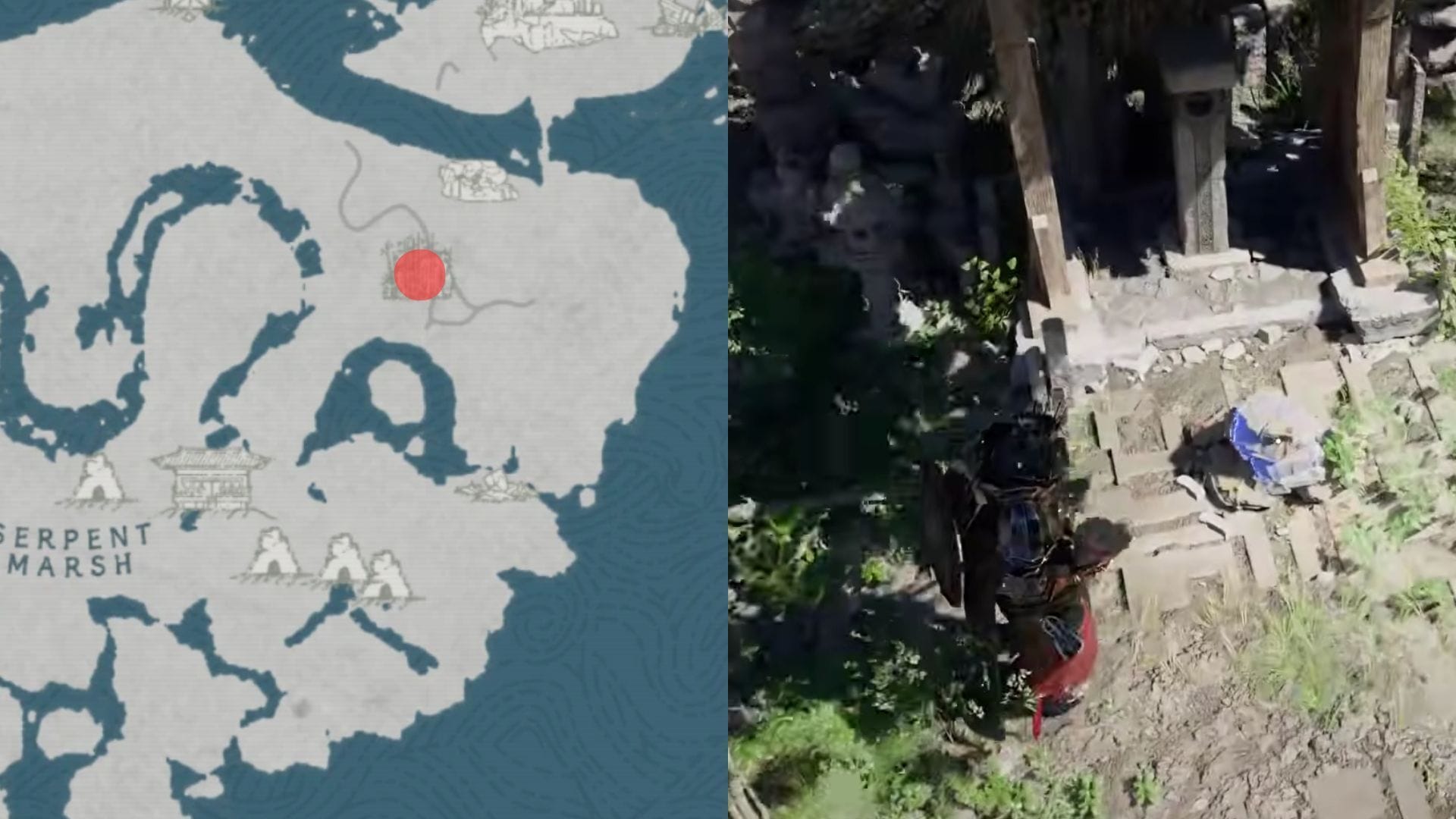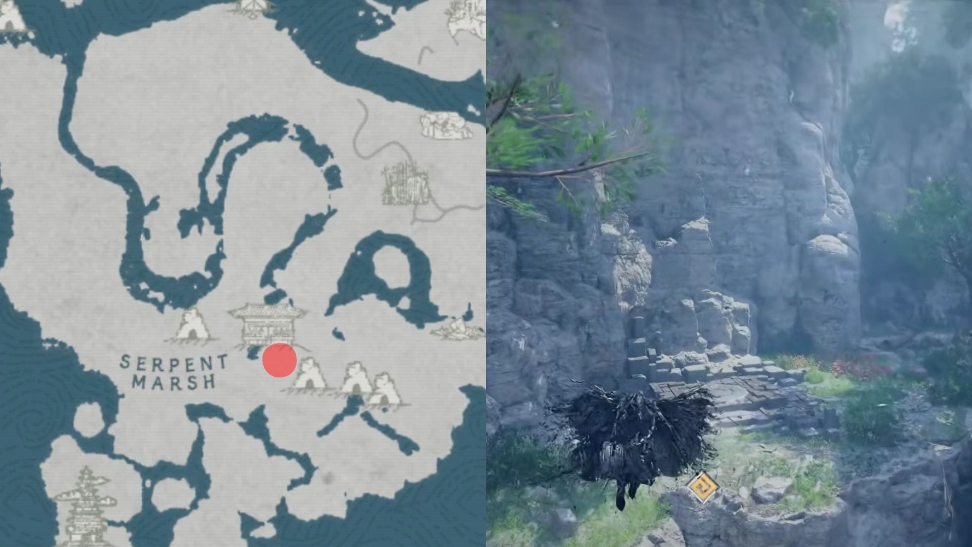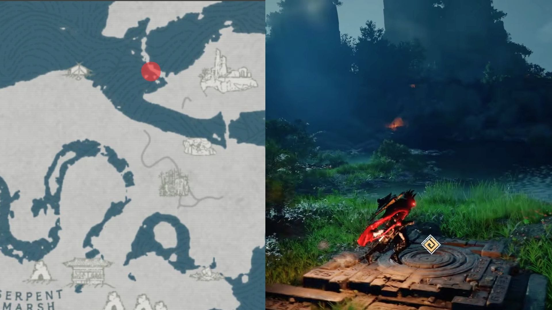 Четвертая точка быстрого перемещения – это второй Abyss Cresset, который находится на виду. Направляйтесь на северо-восточную сторону Serpent Marsh в Бамбуковом лесу и найдите небольшой запустевший храм под деревом с Abyss Cresset. Чтобы активировать его, вам нужно найти три камня в этом районе и положить их на кучу перед ним.