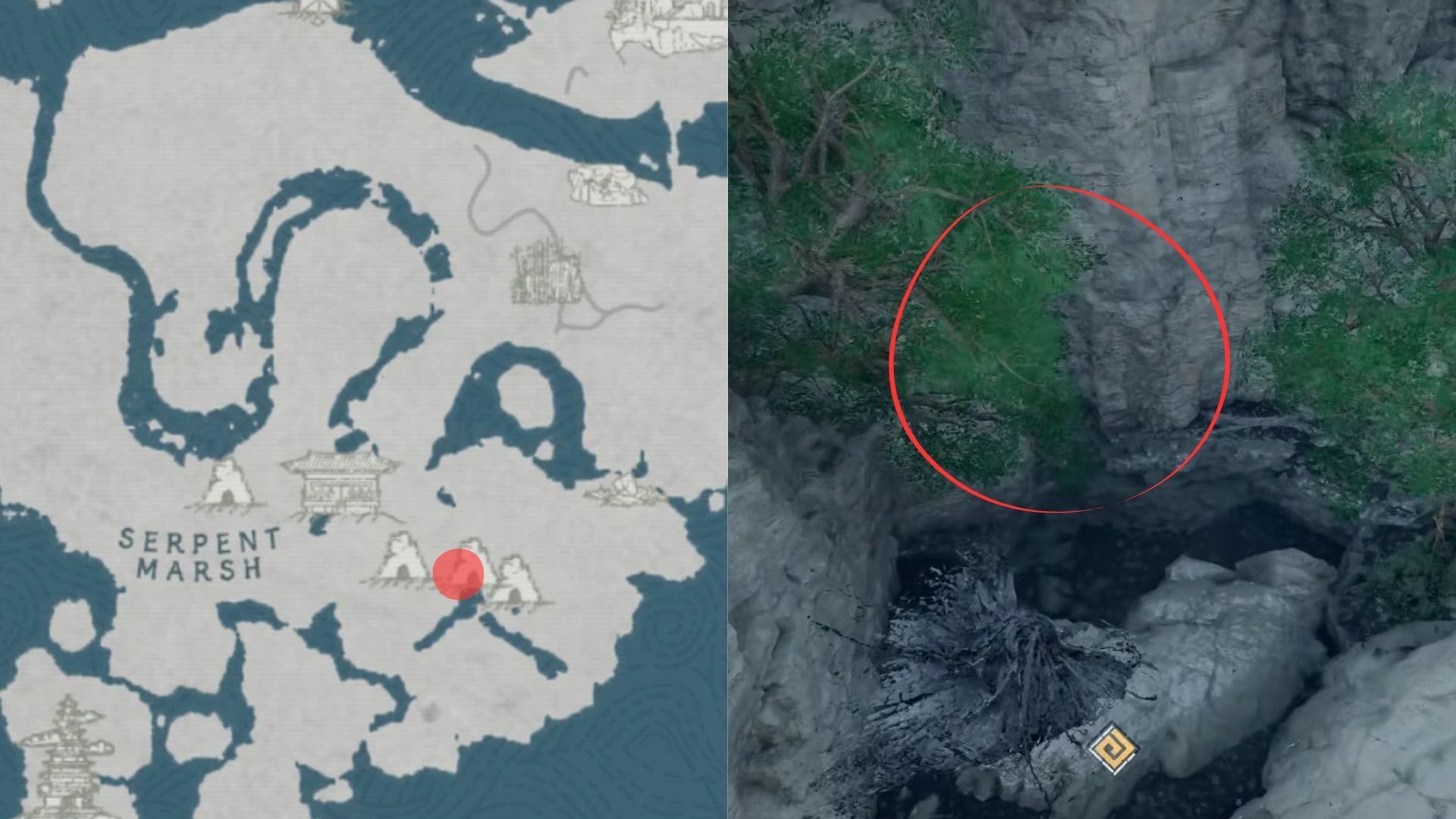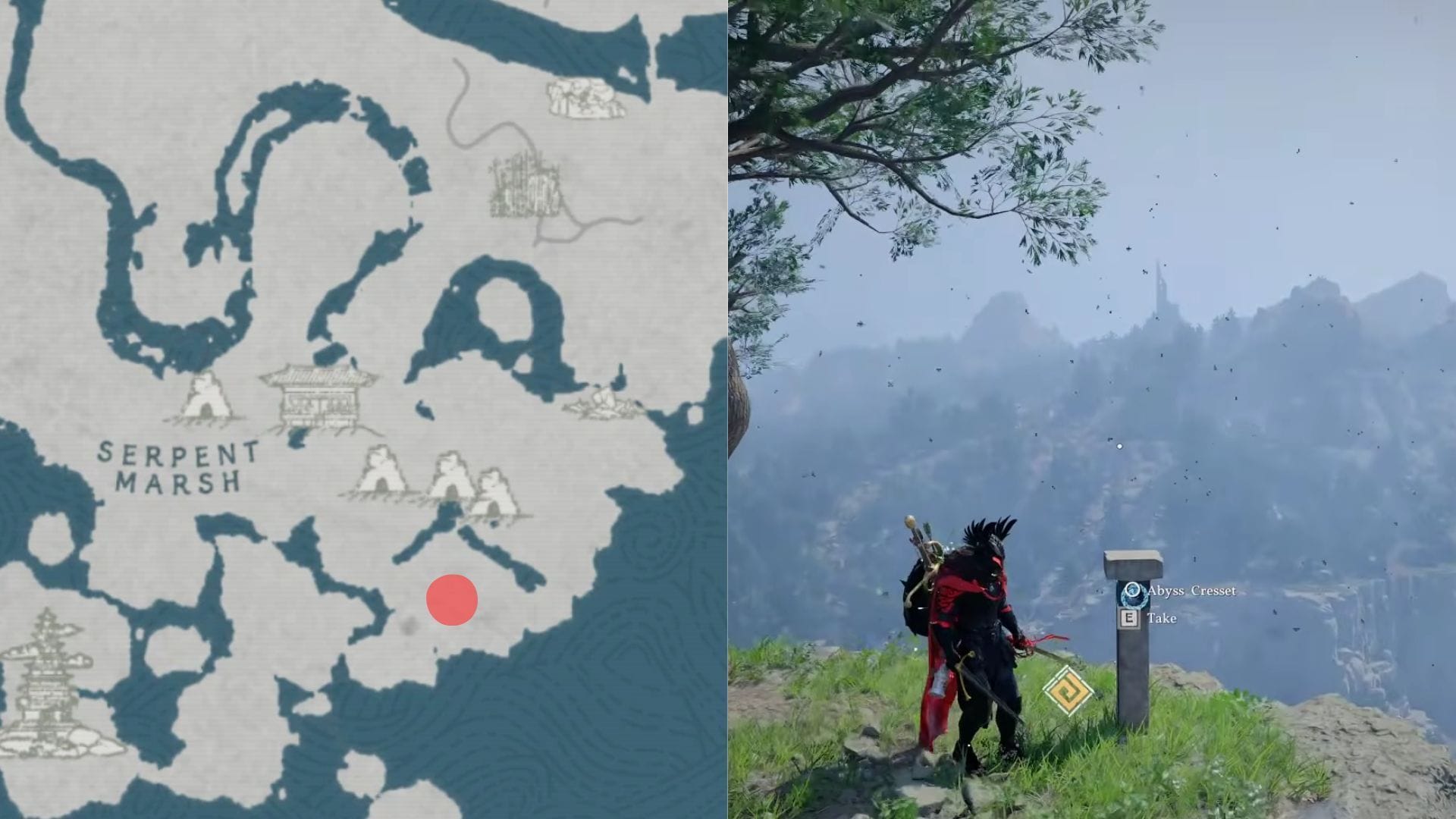 Пятая точка быстрого перемещения в Serpent Marsh в Crimson Desert находится на восточной стороне Бамбукового леса. Поднимитесь к краю водопада, и вы найдете Abyss Cresset, смотрящий на озеро в направлении региона Далесия на карте.