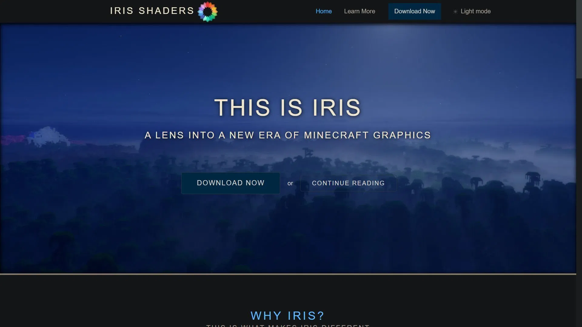 Сначала необходимо скачать установщик Iris Shaders с официального сайта. Это мод, который позволяет запускать любой шейдерный пакет в игре. Поскольку Iris и мод Sodium находятся в партнёрстве, установщик можно использовать для установки обоих.