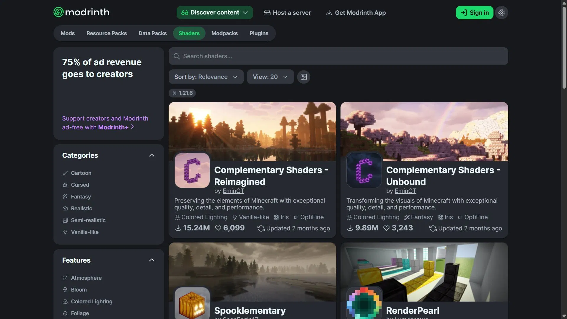 После установки шейдеров Iris вы можете перейти на Modrinth или CurseForge, чтобы скачать любой шейдерный пакет. Эти пакеты будут загружены в виде zip-файлов, которые не нужно открывать. Их следует просто скопировать и вставить в официальный каталог Minecraft.