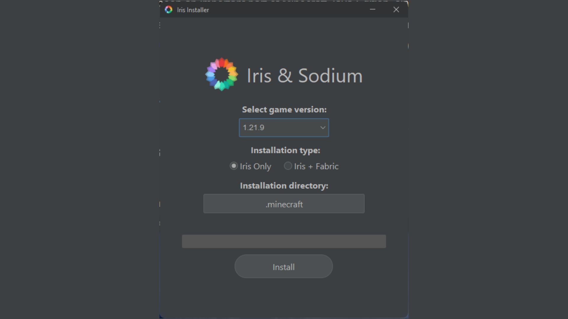 Вы можете установить Iris и Sodium или оба этих мода с загрузчиком модов Fabric. Если вы хотите загрузить и запустить дополнительные моды позже, выберите тип установки “Iris + Fabric”. Если вы хотите установить только Iris, Sodium будет установлен автоматически, если вам нужен только шейдерный функционал и повышение производительности.