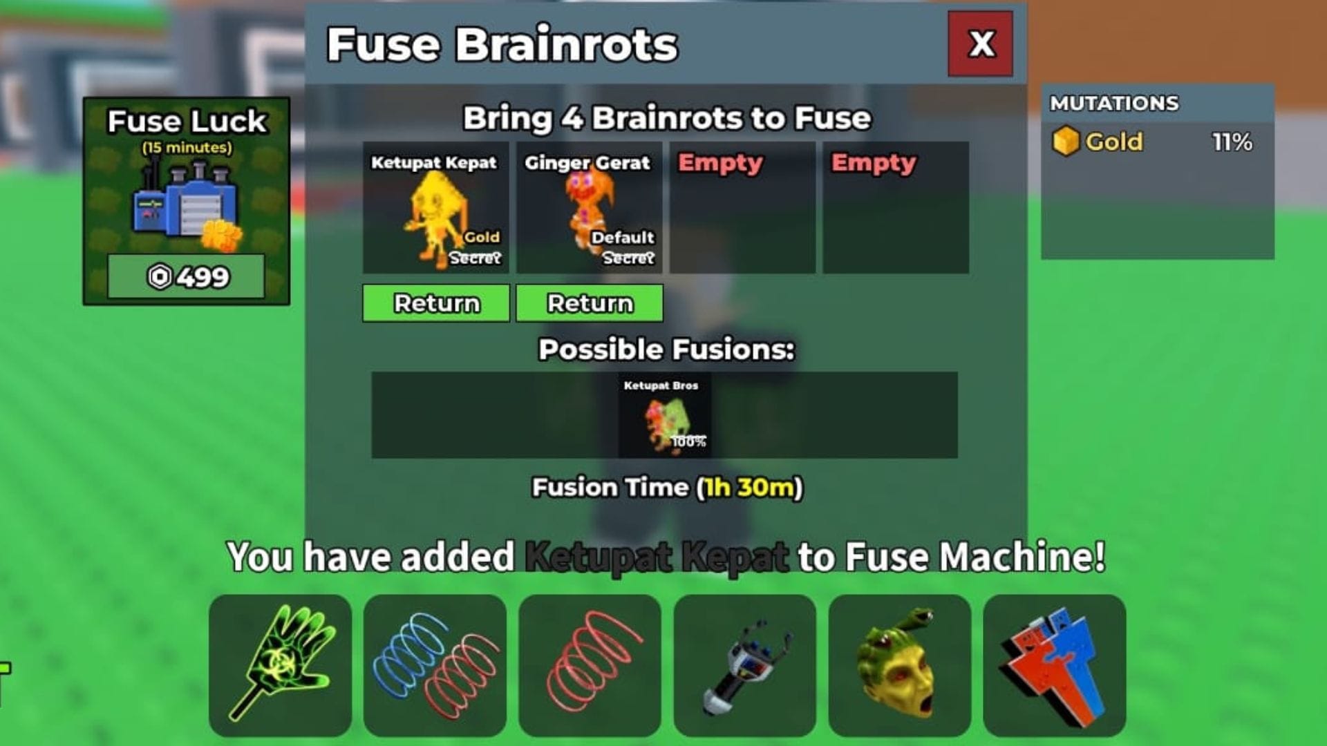 Отправьте Ginger Gerat и Ketupat Kepat, чтобы получить Ketupat Bros с помощью Fuse Machine.