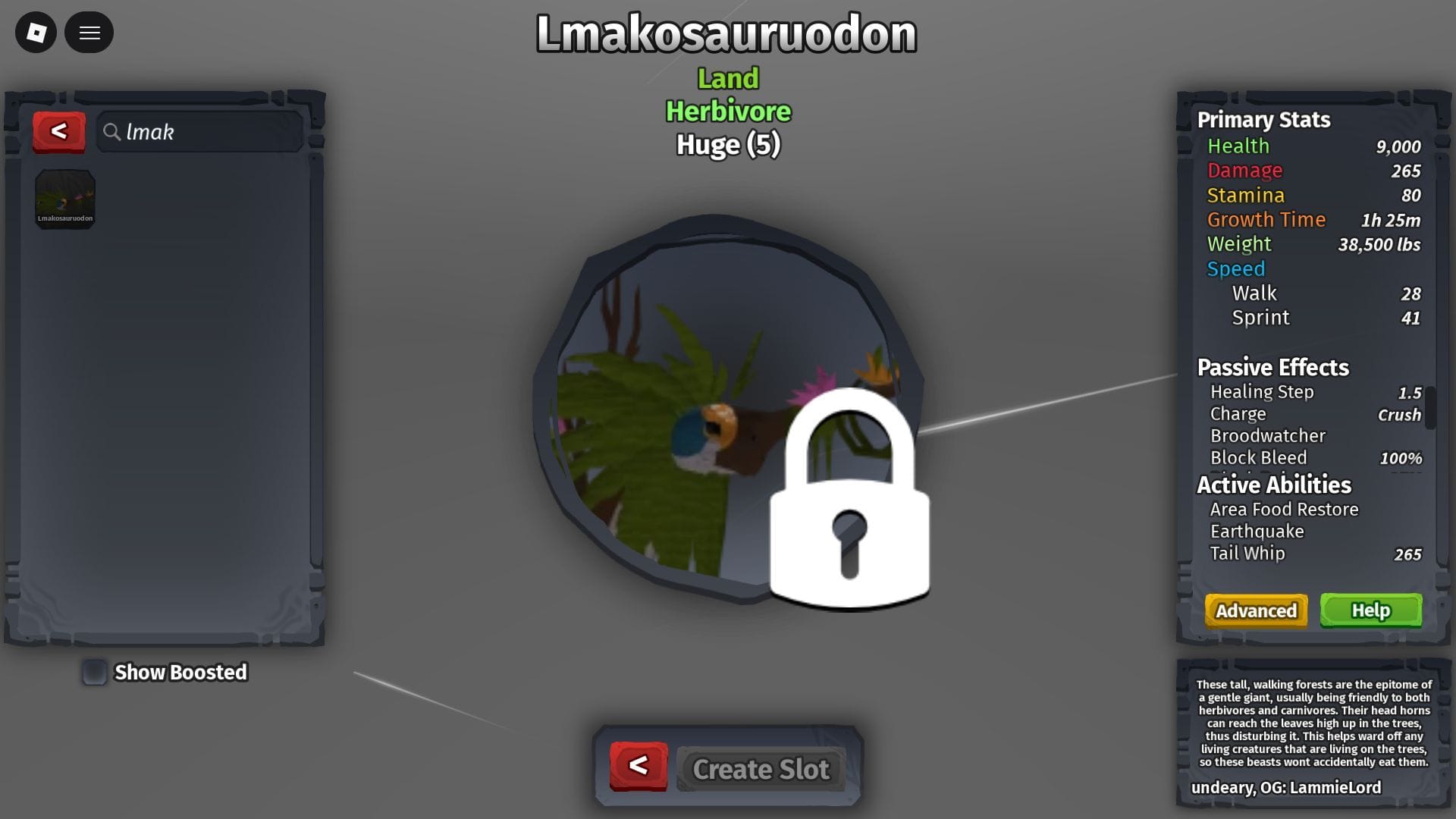 Lmakosauruodon имеет показатель HP в 9,000 очков.