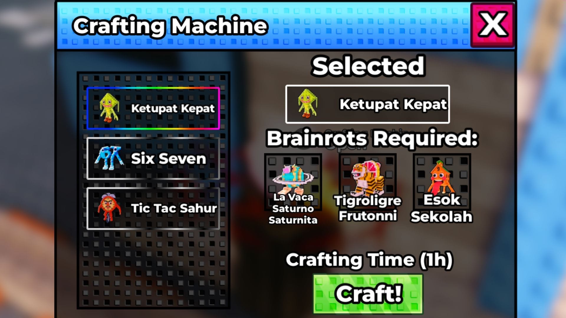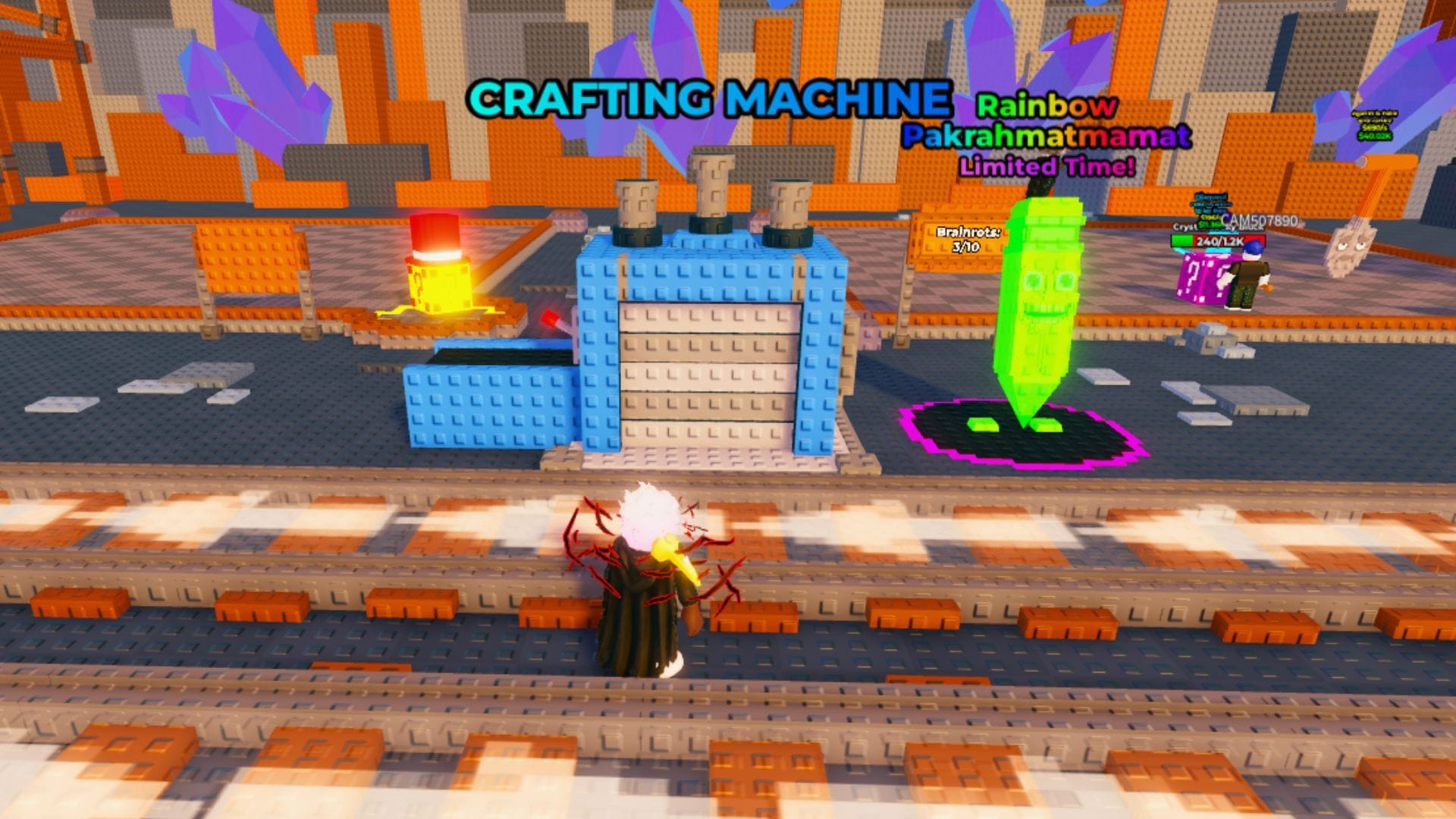 Mine a Brainrot — это инкрементальная симуляция, где основной задачей является выкапывание Lucky Blocks для получения юнитов. Редкие Brainrots, как основная особенность игры, всегда востребованы благодаря своему доходу и высокому потенциалу заработка. Crafting Machine — это внутриигровая функция, с помощью которой вы можете получить три эксклюзивных юнита в этом опыте Roblox.