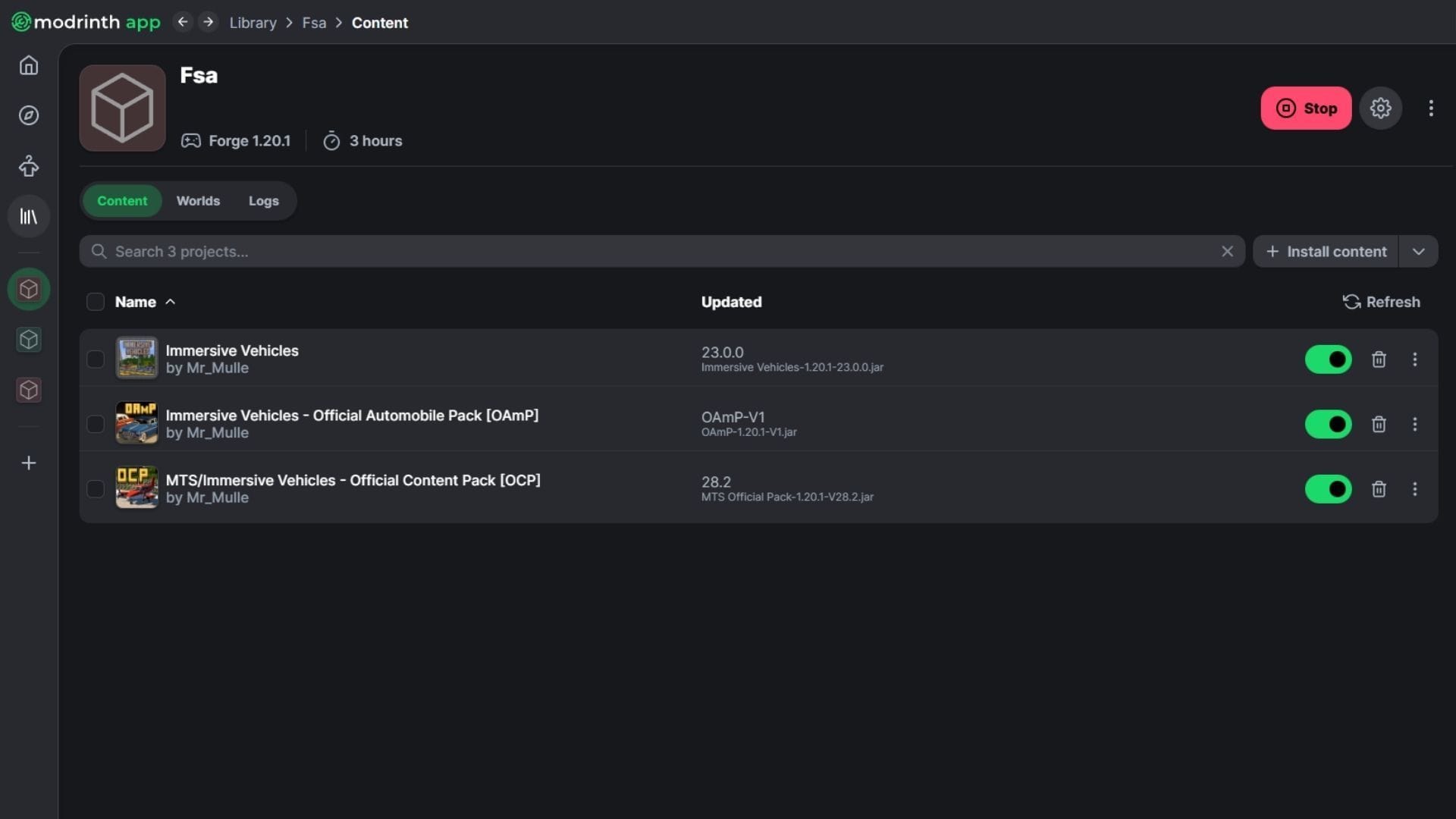 Мод Minecraft Immersive Vehicles можно установить с помощью любого загрузчика модов, который имеет установленный Forge. В этом руководстве мы использовали Modrinth и его встроенный загрузчик модов с Forge на версии игры 1.20.1.