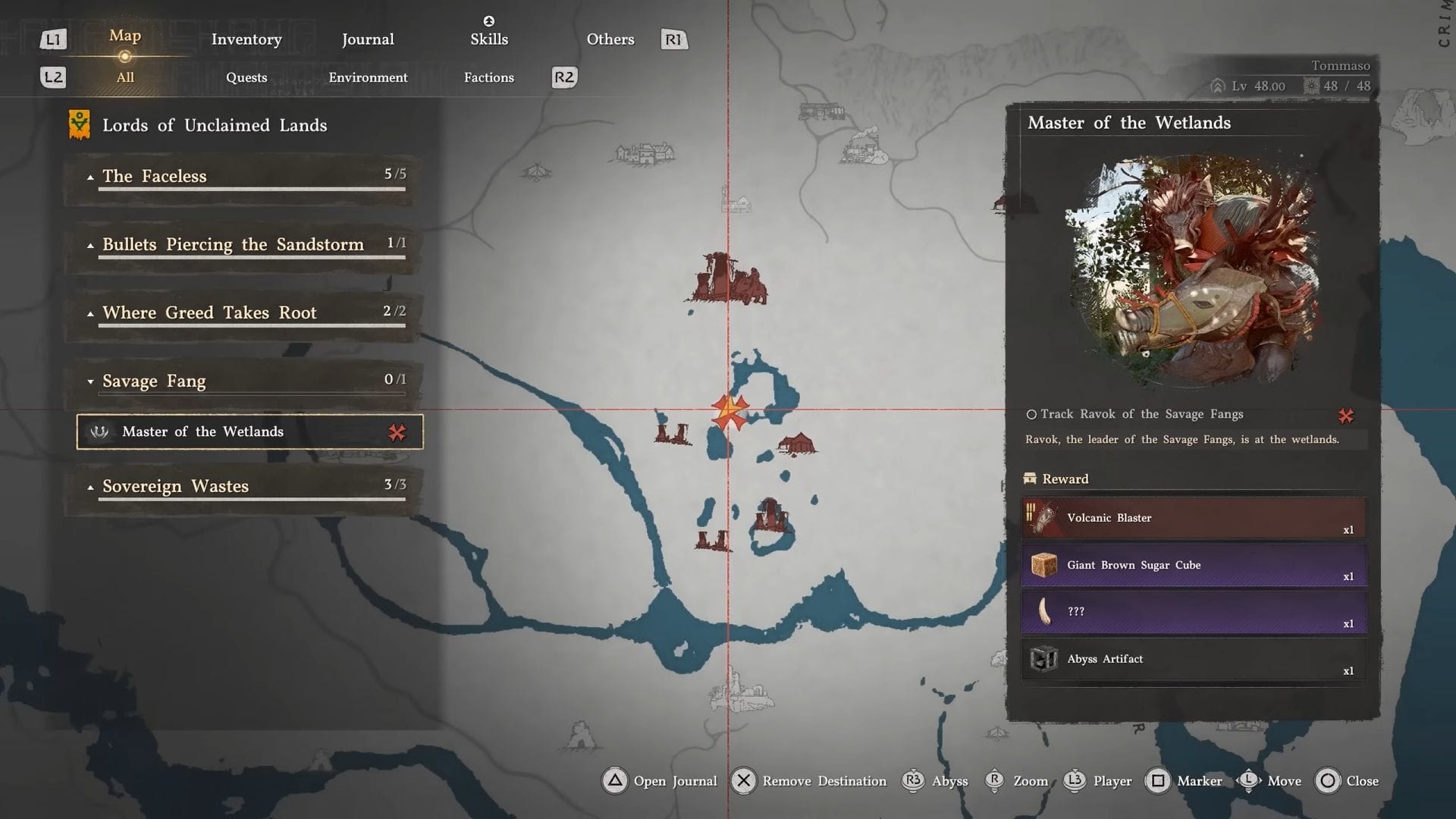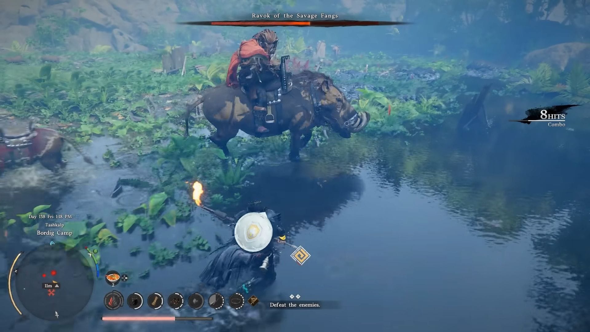 Что касается босс-монстра Rock Tusk Warthog, процесс будет схожим с ибексом. Во-первых, вам потребуется достаточно продвинуться по основной сюжетной линии, чтобы разблокировать регион Crimson Desert. Как только это будет сделано, перейдите в центр руин, расположенных немного к западу от Красной реки. После того как вы прибываете и побеждаете врагов здесь, вам автоматически будет выдано задание Master of the Wetlands.