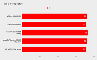 По крайней мере, это так на стандартных частотах. А как насчет разгона? Как и Asrock Taichi, B550M-HDV не позволяет настраивать множитель и позволяет плате автоматически выбирать напряжение процессора. Итак, новичкам нужно будет позаботиться. Но с процессором, работающим на 1,3 В, эта плата обеспечивает точно такую же частоту всех ядер 4,2 ГГц, что и почти все B550, которые мы тестировали с нашим четырехъядерным тестовым чипом AMD Ryzen 3100.