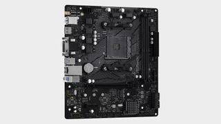 Если это общая теория, лежащая в основе B550, как обстоят дела с конкретной реализацией Asrock B550M-HDV? Несомненно, это выглядит так же дешево, как и на первый взгляд. Например, у вас есть только два слота памяти DIMM. Есть только один дополнительный четырехконтактный разъем питания процессора, что не сулит ничего хорошего для разгона. Нет и минимального охлаждения. VRM голые, подача питания всего лишь четырехфазная, и доступно только два разъема для вентиляторов.