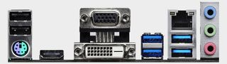 В другом месте есть один разъем USB 3.2 Gen 1, пара разъемов USB 2.0, всего четыре порта SATA и слот PCI-E 3.0 x1. На задней панели расположены четыре порта USB-A 3.2 Gen 1, пара разъемов USB-A 2.0, LAN, PS2, HDMI, VGA и DVI. Что там нет? USB-C или DisplayPort.