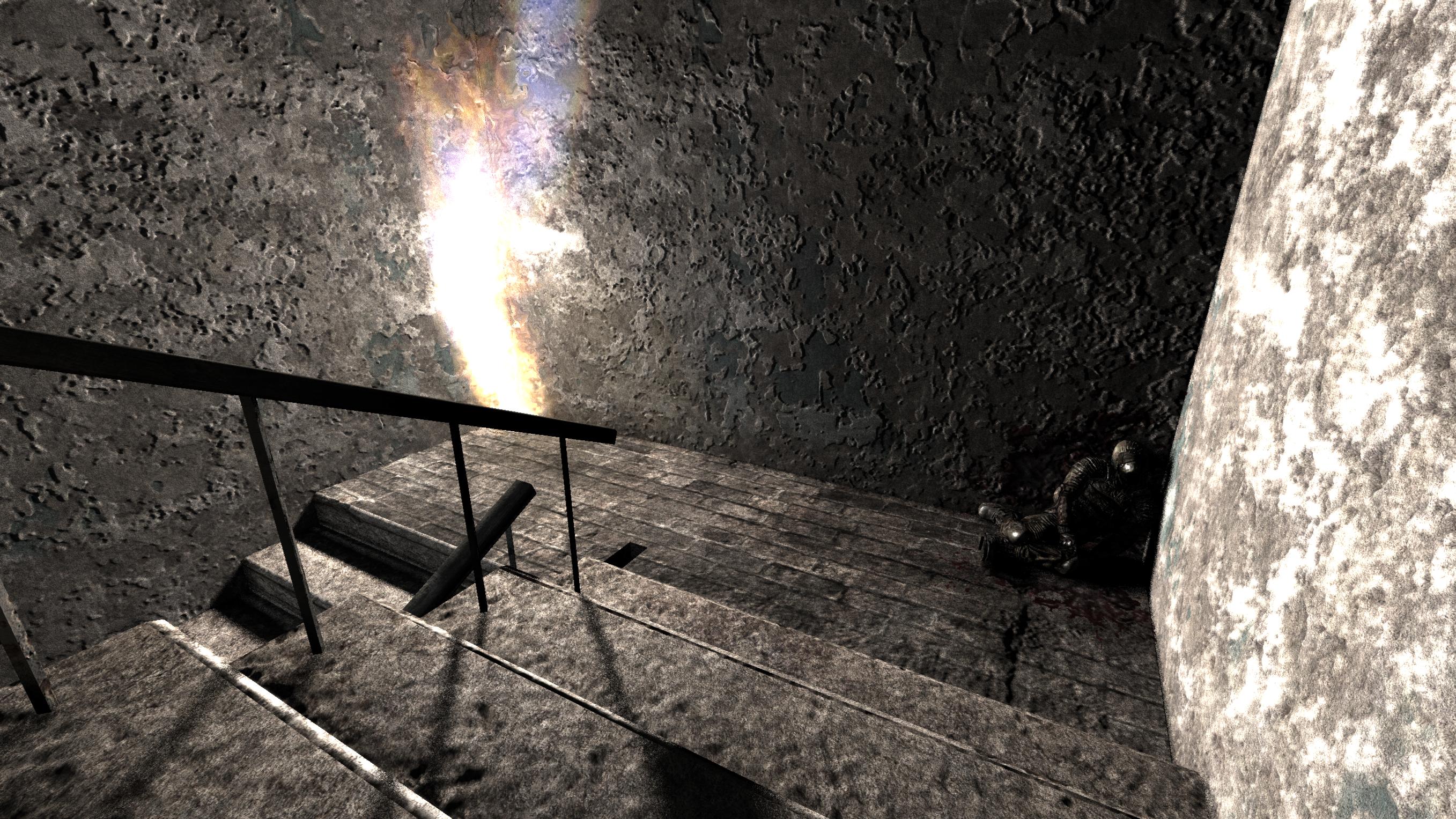 Вам придется начать с использованием лестницы. Идите на самый низкий уровень. Продолжай двигаться вперед. Вы встретите первую группу персонажей-зомби возле небольшого входа (# 1). Сохраните боеприпасы, стреляя по головам этих монстров. Вы также должны следить за артефактами и трупами. Хватайте их за предметы любой ценности. Вы должны быть в состоянии добраться до шахты лифта. Лифт не работает, поэтому начните использовать соседние лестницы (# 2). Еще раз, вам придется достичь самого низкого уровня. Сохраните свою игру там.