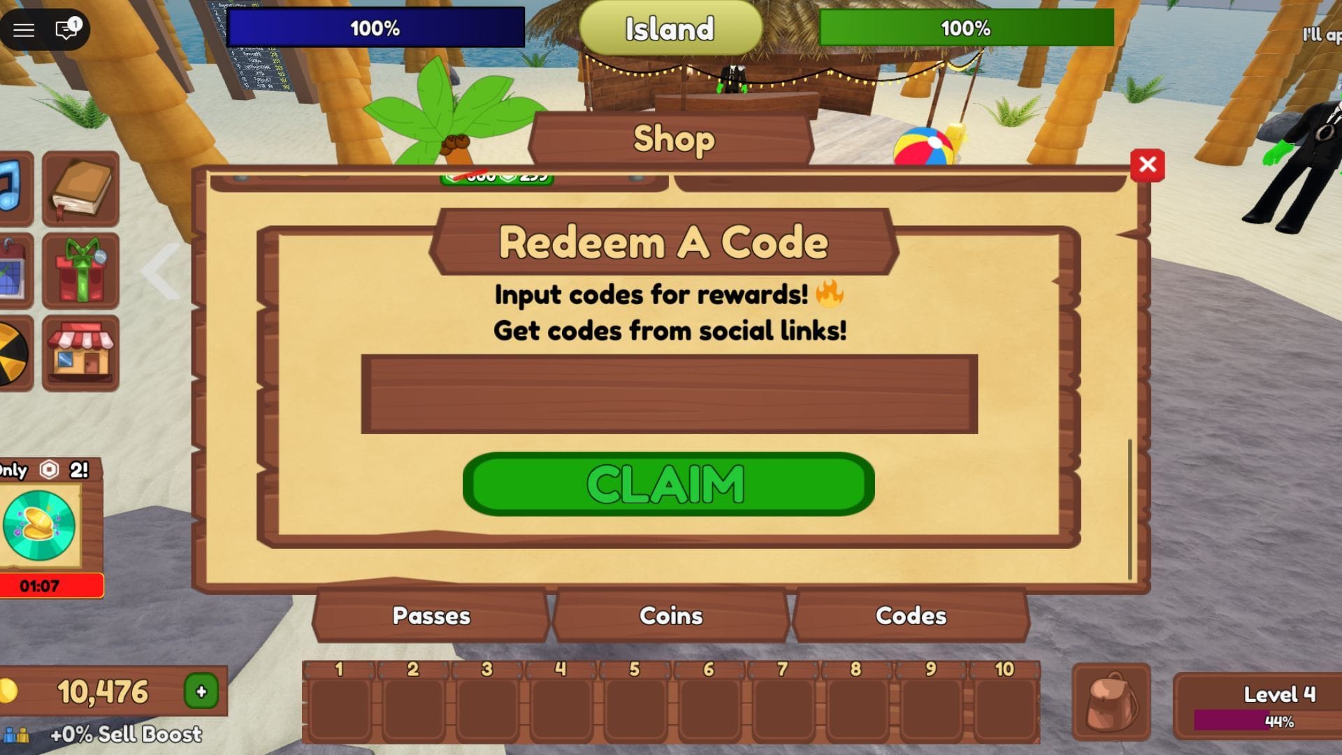 Опция “коды” находится в разделе Магазин.