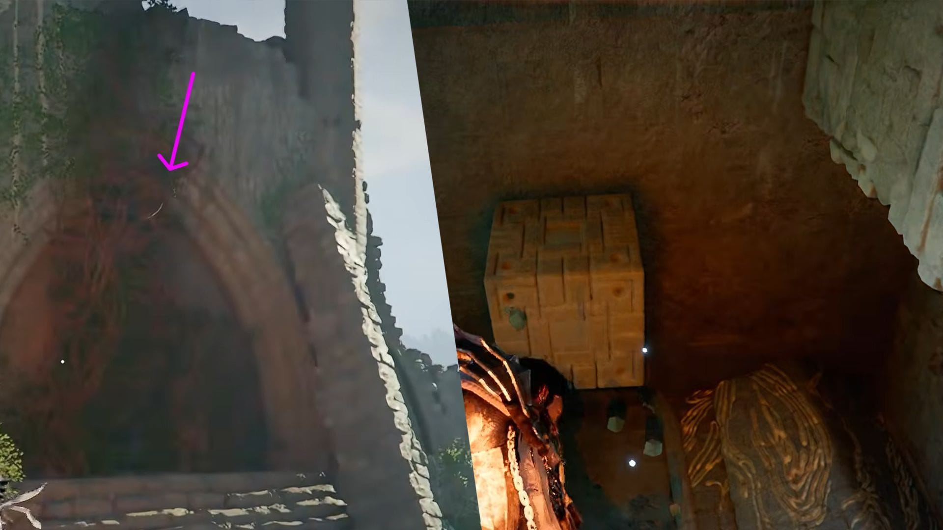 Кроме того, вы также сможете найти Плащ Ледяного Проклятия в руинах Святилища. В центральной части вы увидите три арки, ведущие в разные стороны. Выберите арку посередине; она будет закрыта лозами, которые можно сжечь с помощью Услепляющего Всплеска. Пройдите по пути до конца, и вы найдете сундук, содержащий Плащ Ледяного Проклятия.