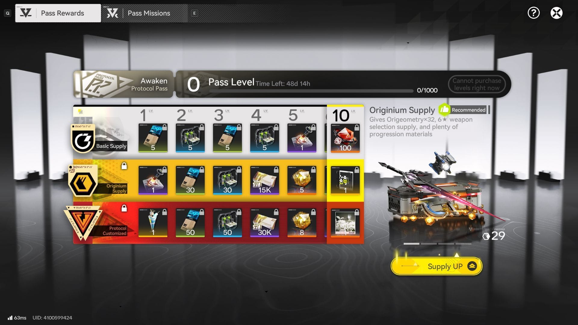 Protocol Pass в Arknights: Endfield насчитывает впечатляющие 60 уровней. Его можно улучшать, выполняя различные задачи, что будет приносить вам опыт для повышения уровня. После накопления 1000 опыта ваш уровень повысится.