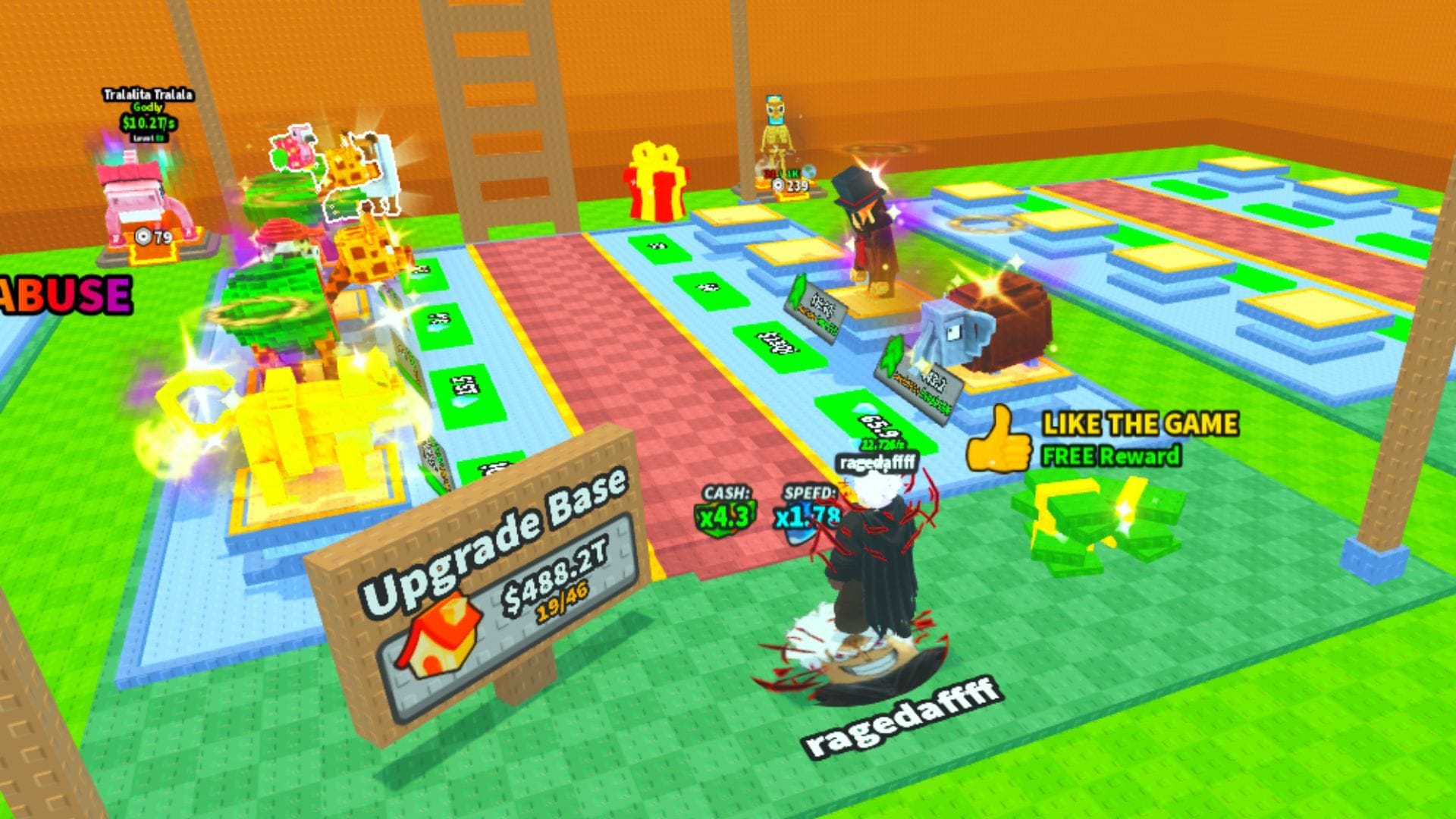 Вот почему важно проводить улучшения перед тем, как входить в более узкие зоны. На данный момент вы можете улучшать свою скорость и ёмкость переноски, а также уменьшать свой размер. В этой игре есть две валюты: Деньги и Самоцветы. Обе валюты полезны для улучшения Brainrots, выполнения улучшений и перерождений. Однако погодные явления от Администратора могут быть вызваны только вручную с использованием Самоцветов.