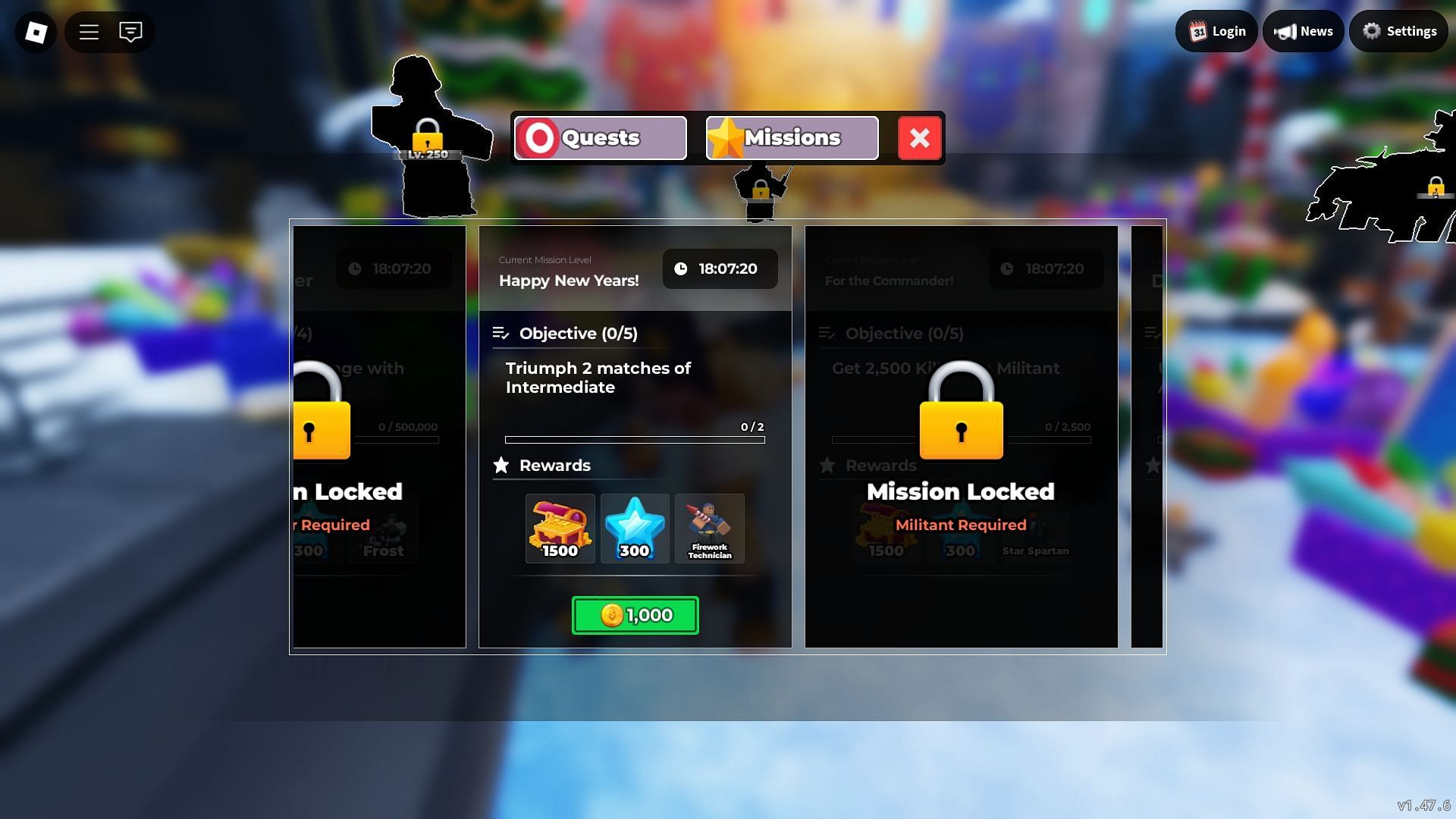 Квест Happy New Years Quest относится к категории Миссионного квеста в игре, где вам нужно завершить серию из пяти задач. Этот квест сбрасывается каждый день в 00:00 UTC, и чтобы разблокировать его и приостановить таймер сброса, вам нужно заплатить 1,000 монет.