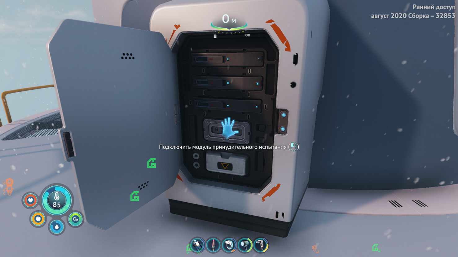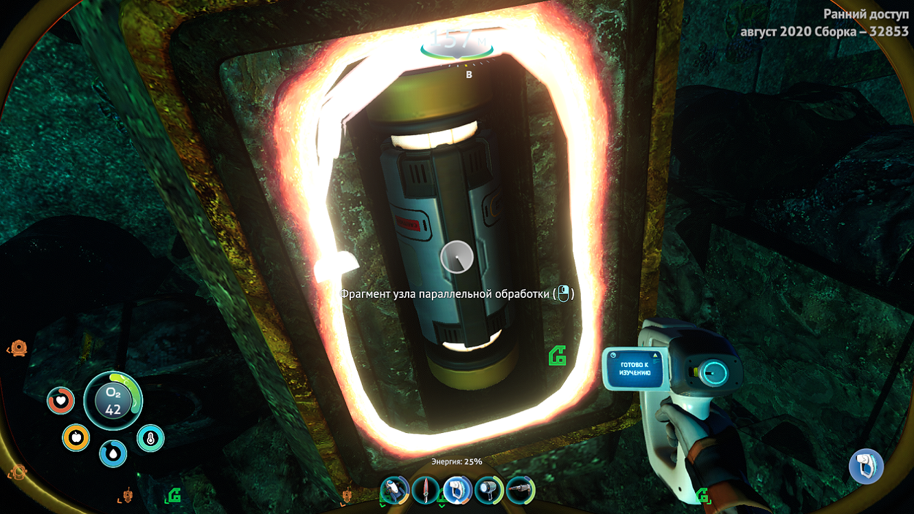Исследуйте его изнутри, ваша цель – найти запечатанную дверцу, разрежьте её, использую «Лазерный резак» и просканируйте содержимое: