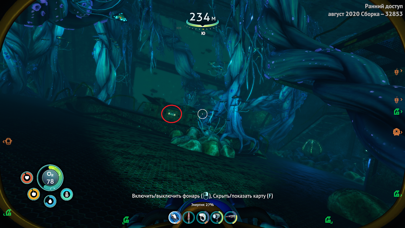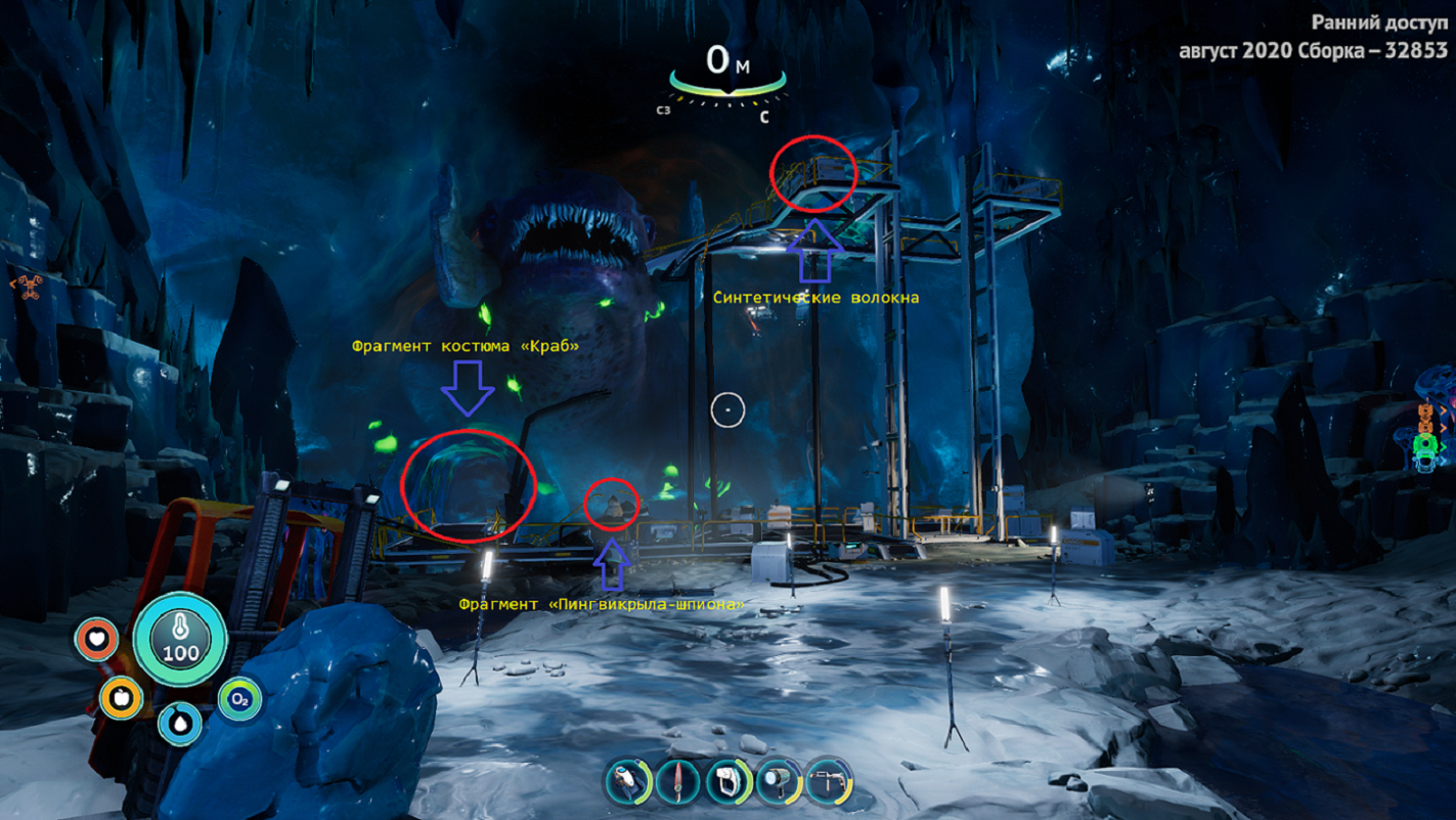 Спускайтесь на 900 метров (максимум для «Морехода», поэтому оставьте его где-нибудь неподалеку на 890 высоте).