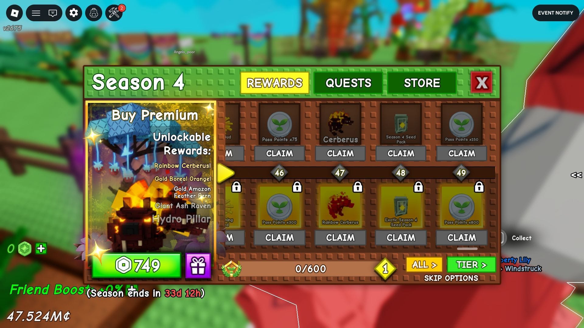 Если вы приобретете премиум-уровень, стоимостью 749 Robux, вы получите радужный вариант Цербера на уровне 47. Обратите внимание, что радужный вариант отличается лишь косметически от своего обычного собрата.