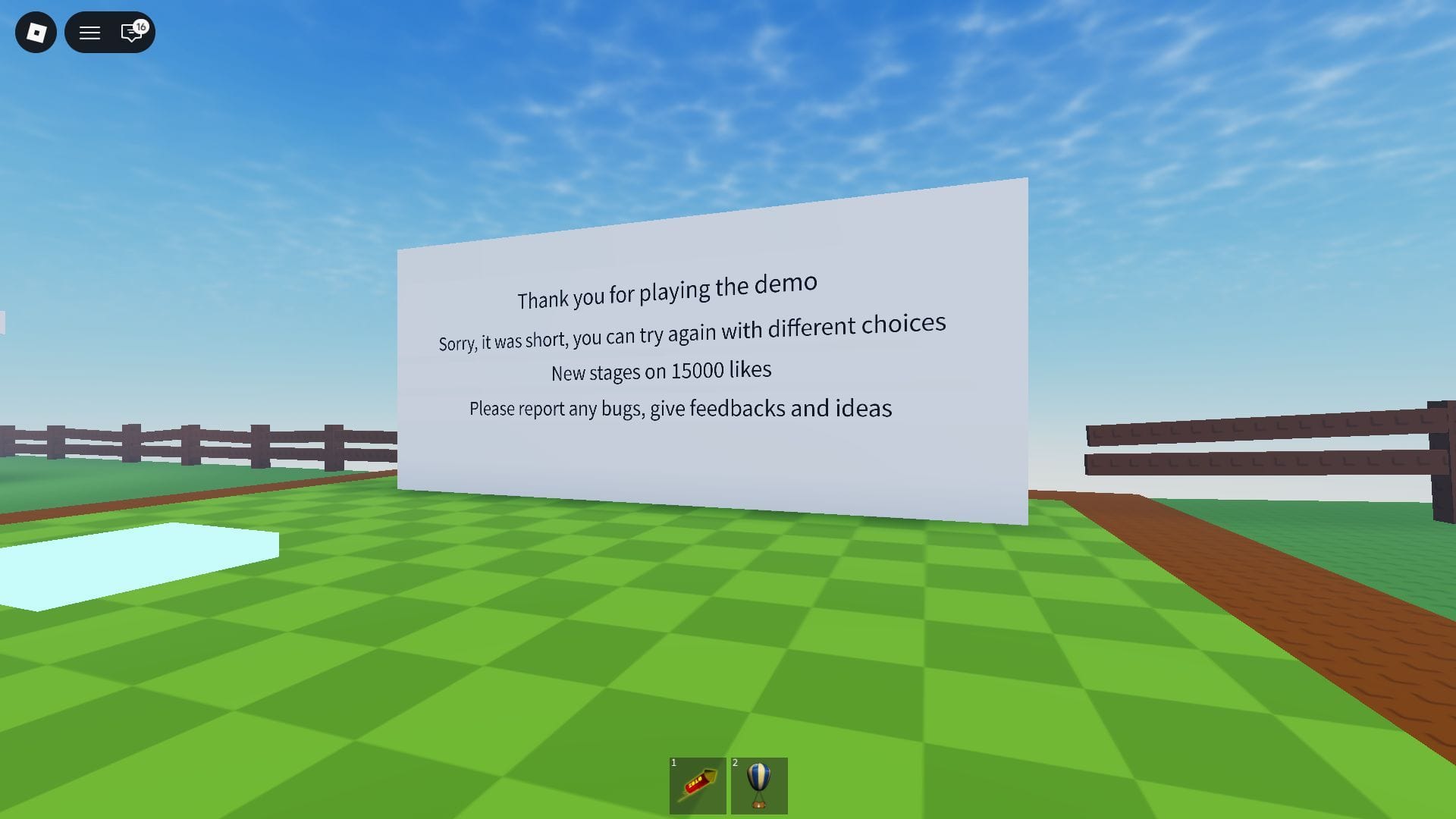 В игре есть конечная точка после двух этапов, каждый из которых включает более дюжины выборов. По завершении вы можете воспользоваться функцией респауна, встроенной в меню Roblox, чтобы снова сыграть в игру. Каждый раз при игре вы встретите различные выборы, которые применят уникальные эффекты к вашему аватару. Не забудьте попробовать эти комбинации, чтобы увидеть, как ваш аватар будет выглядеть под конец.